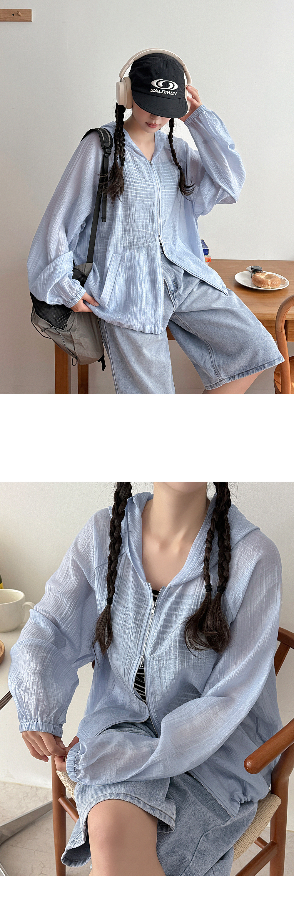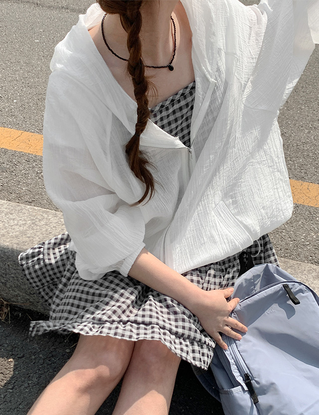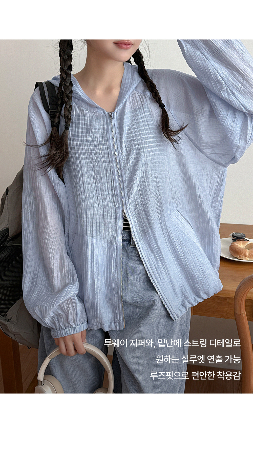 - 투웨이 지퍼와, 밑단에 스트링 디테일로