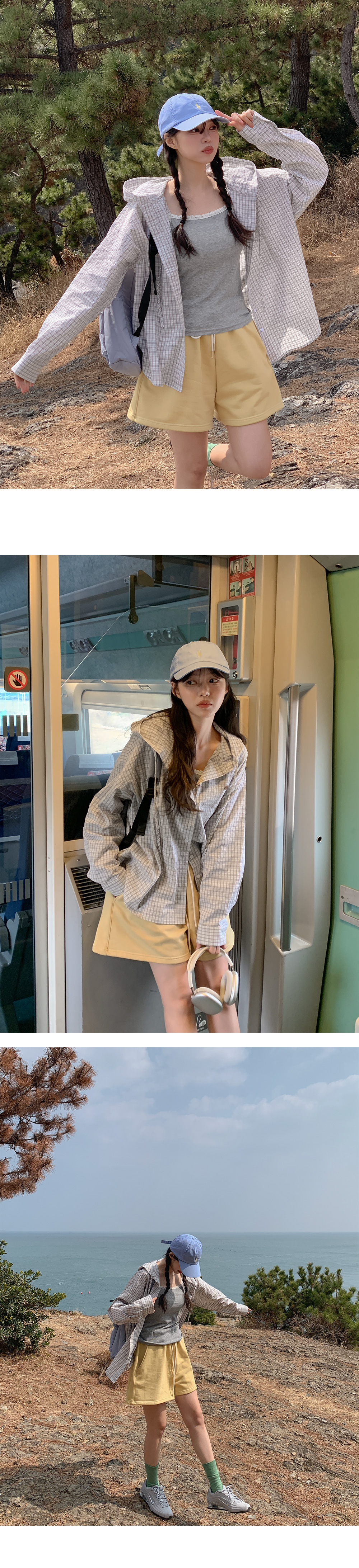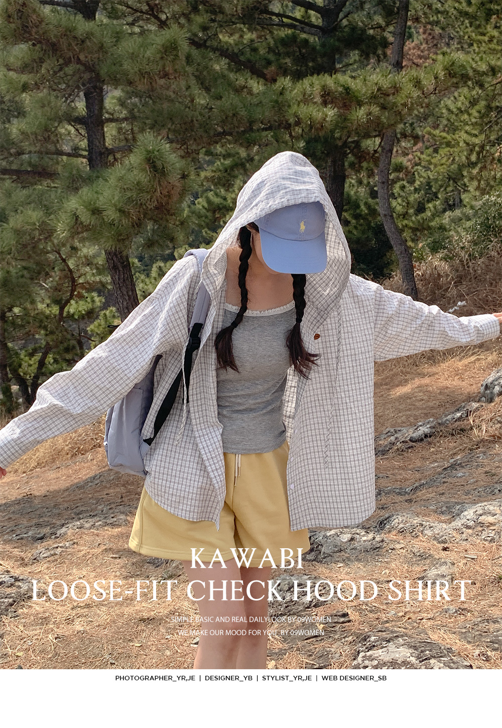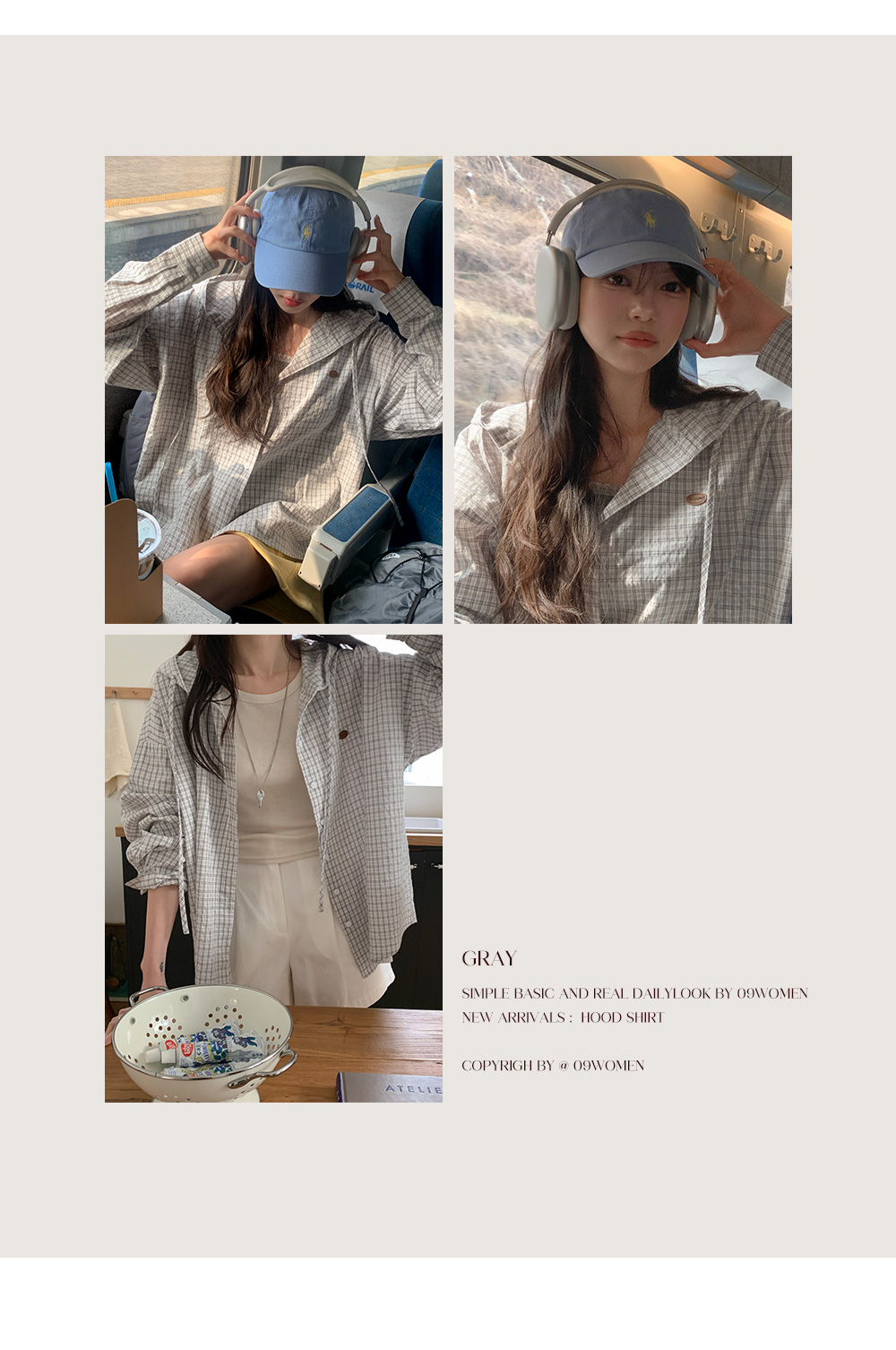 가볍게 툭- 걸쳐 입기 좋은 내추럴 후드 체크 셔츠
