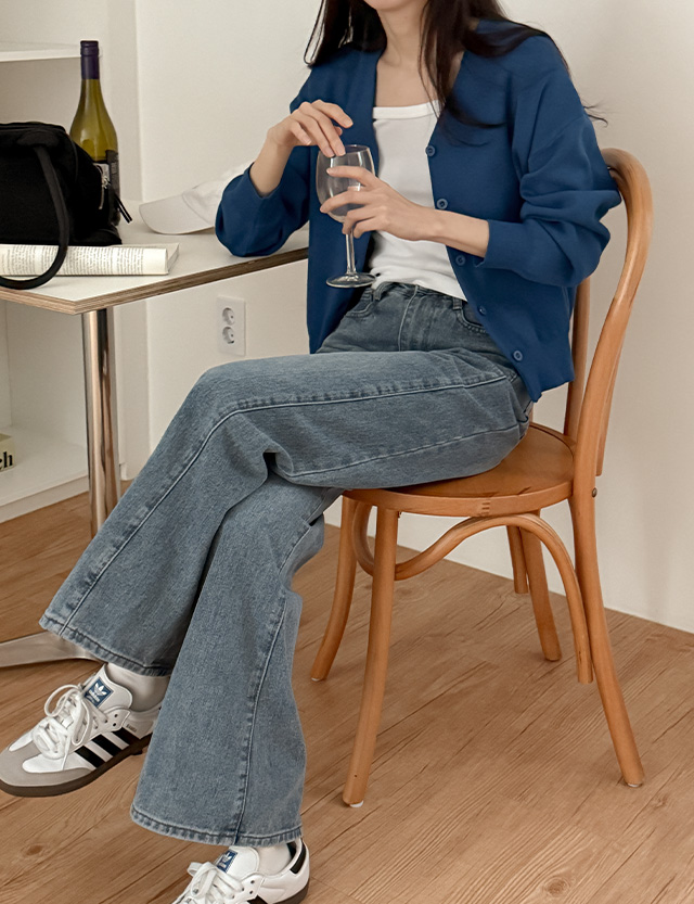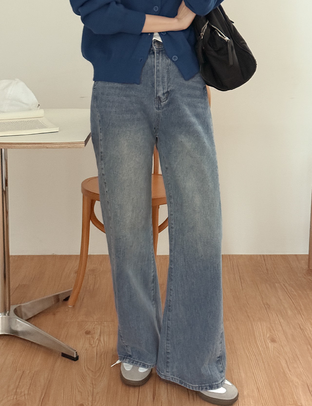 - 과하지 않은 와이드 라인이 체형을 자연스럽게 커버해 슬림한 아웃핏 완성