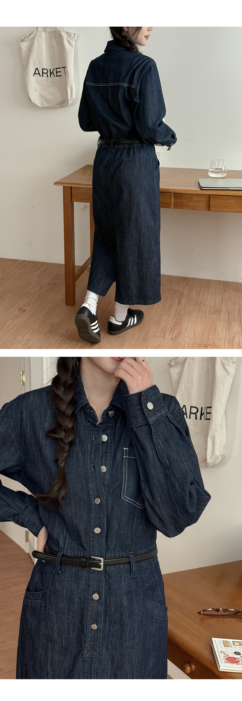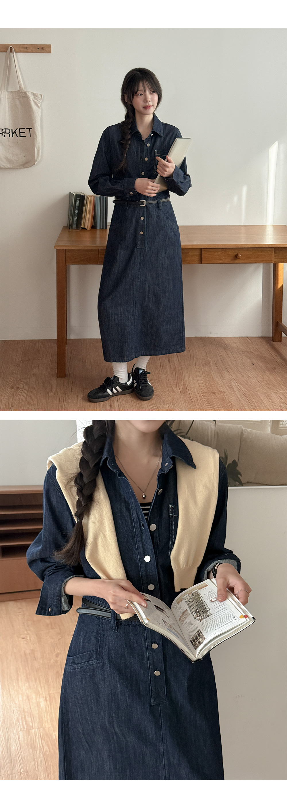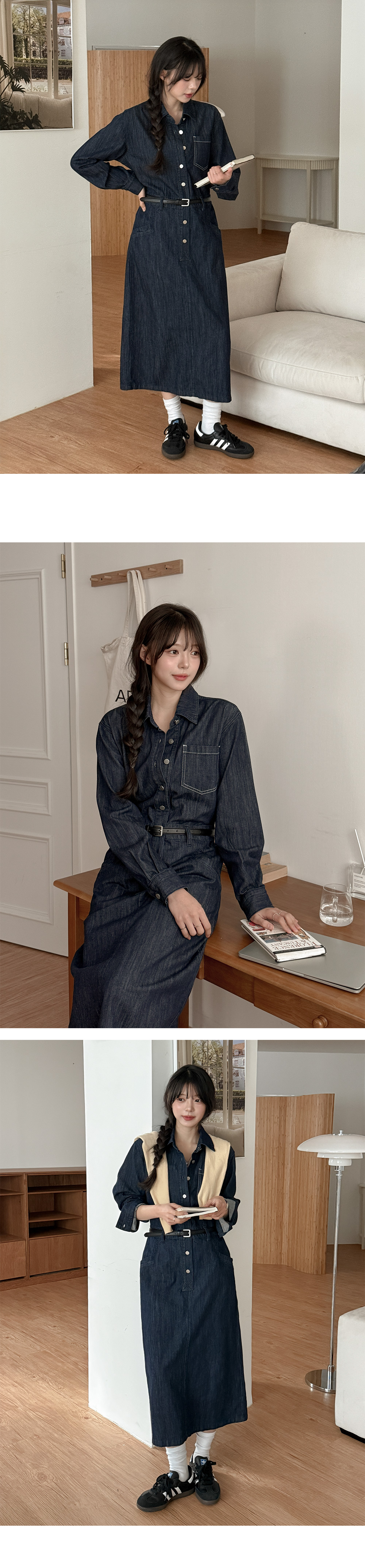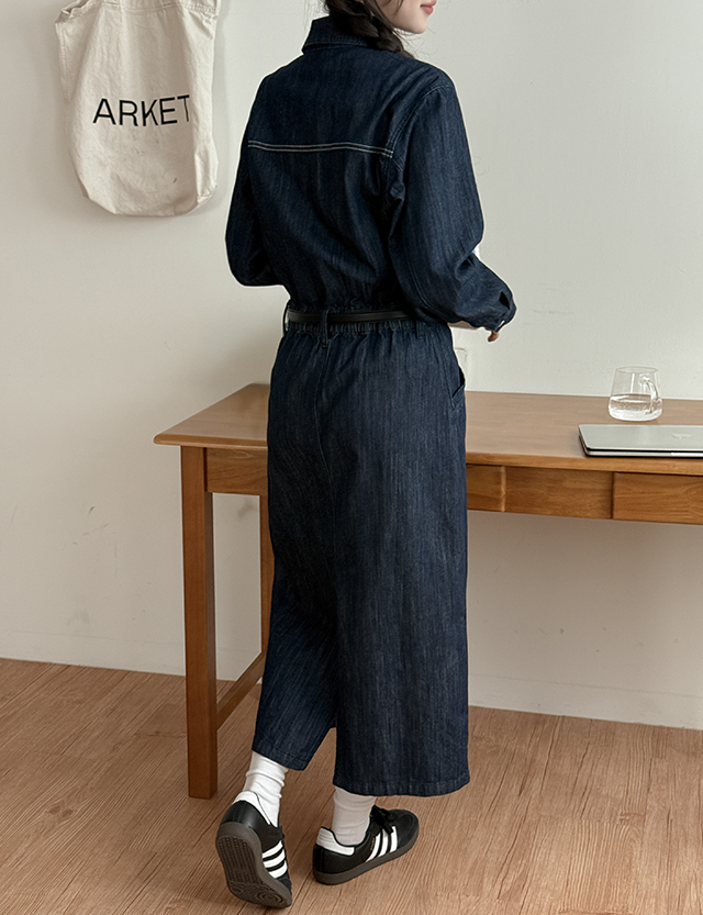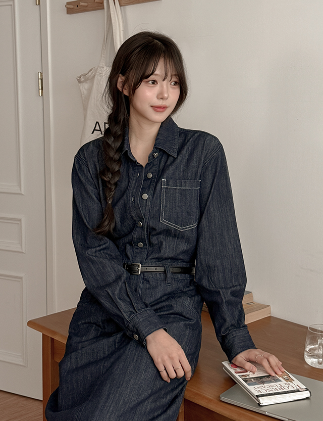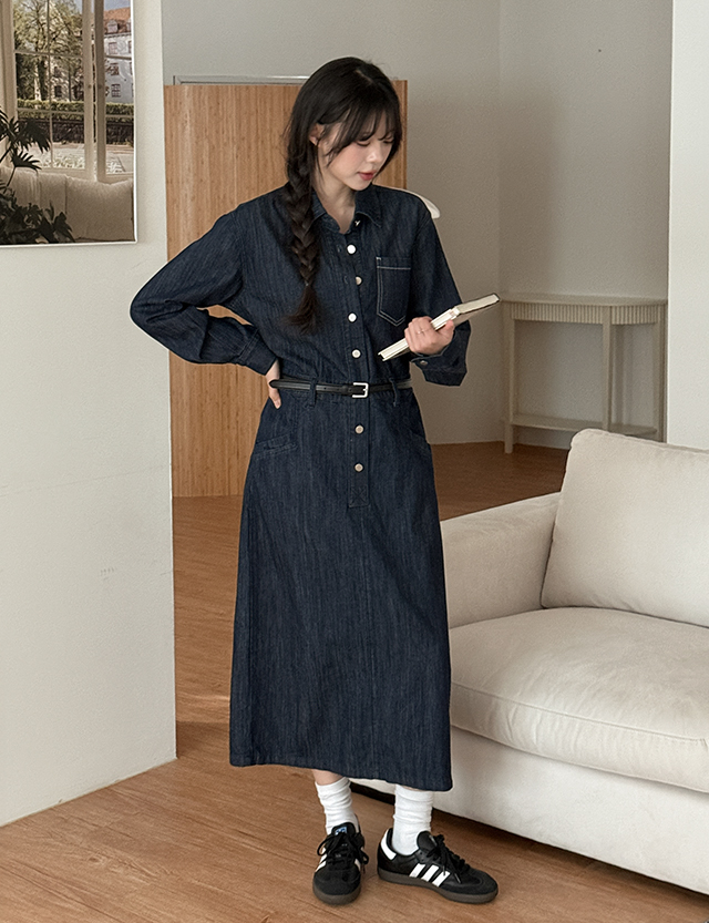 데님 카라 롱 원피스예요