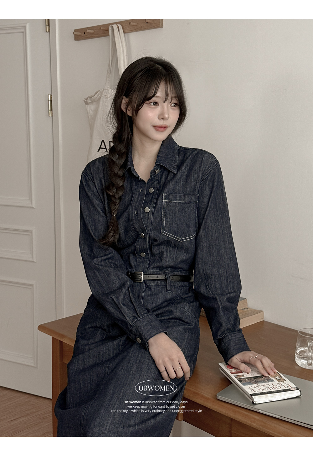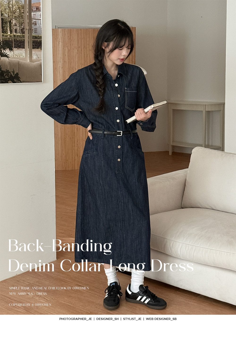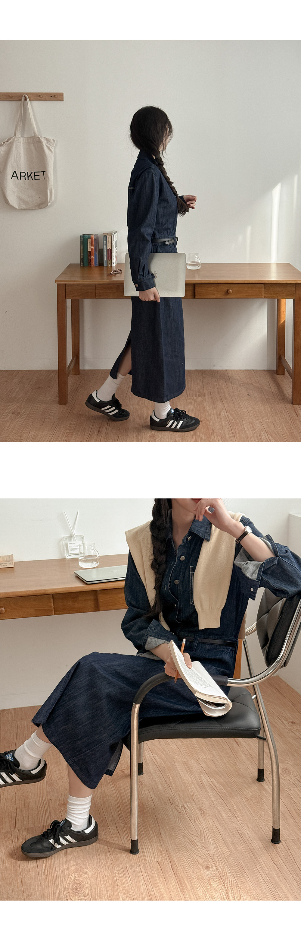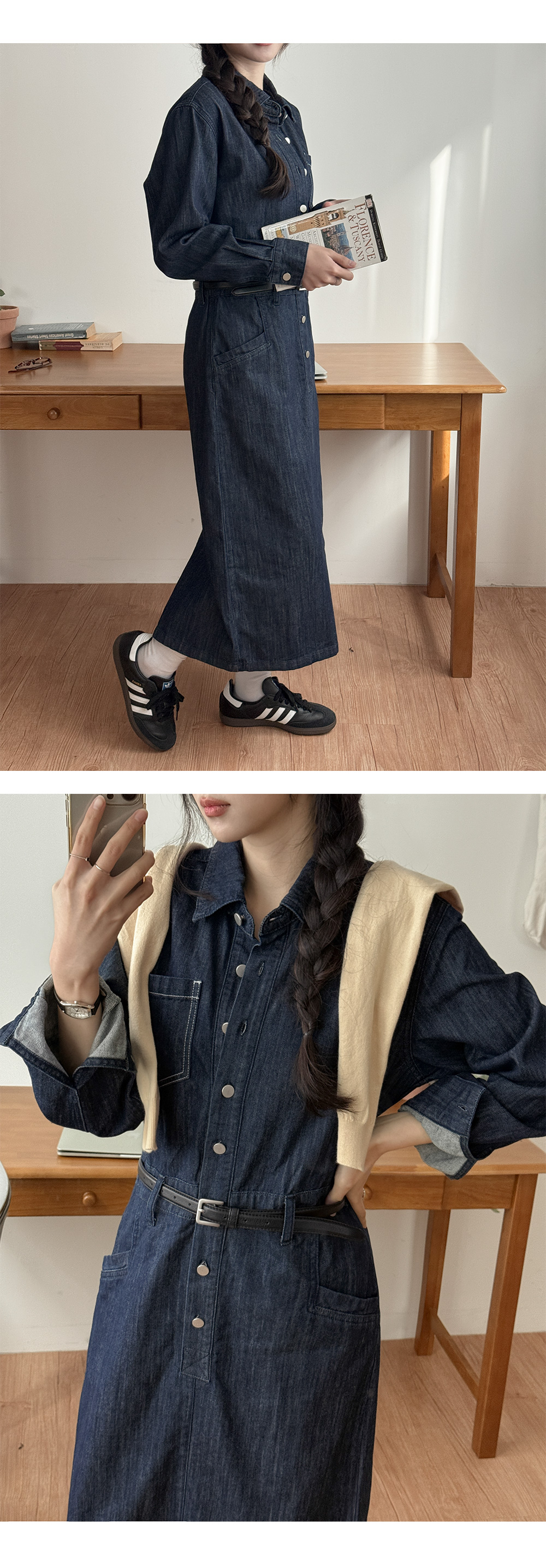 데님 카라 롱 원피스예요