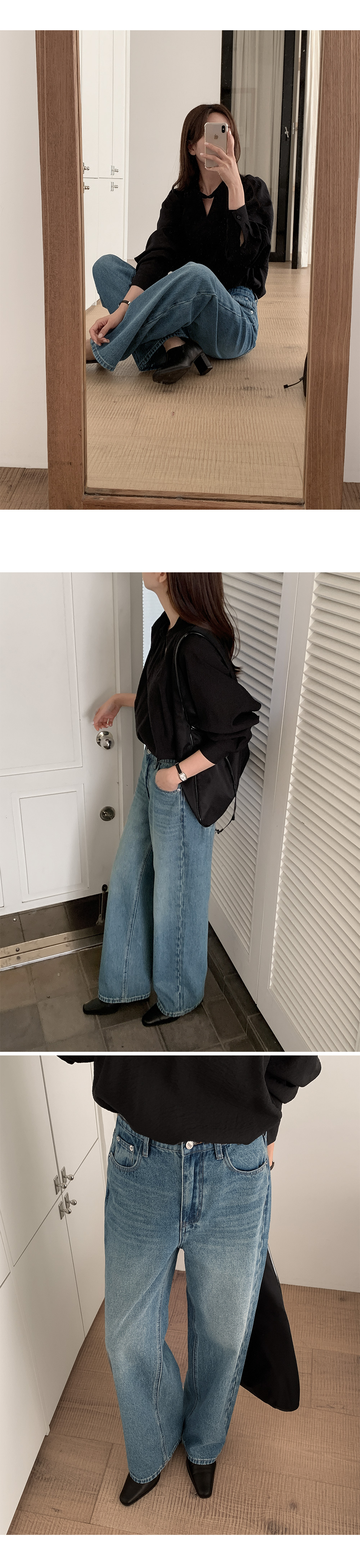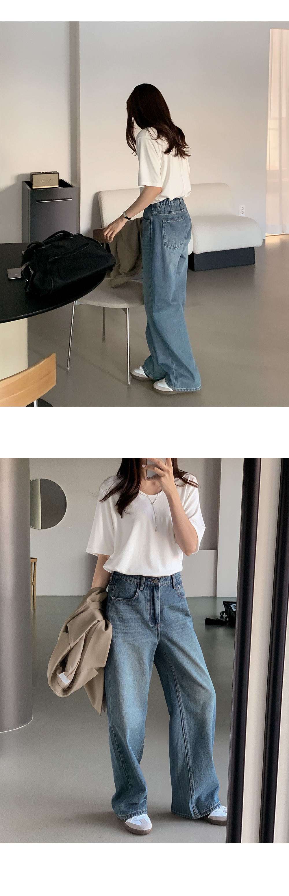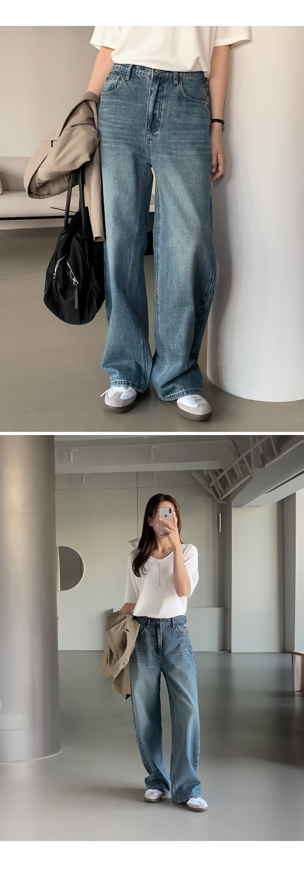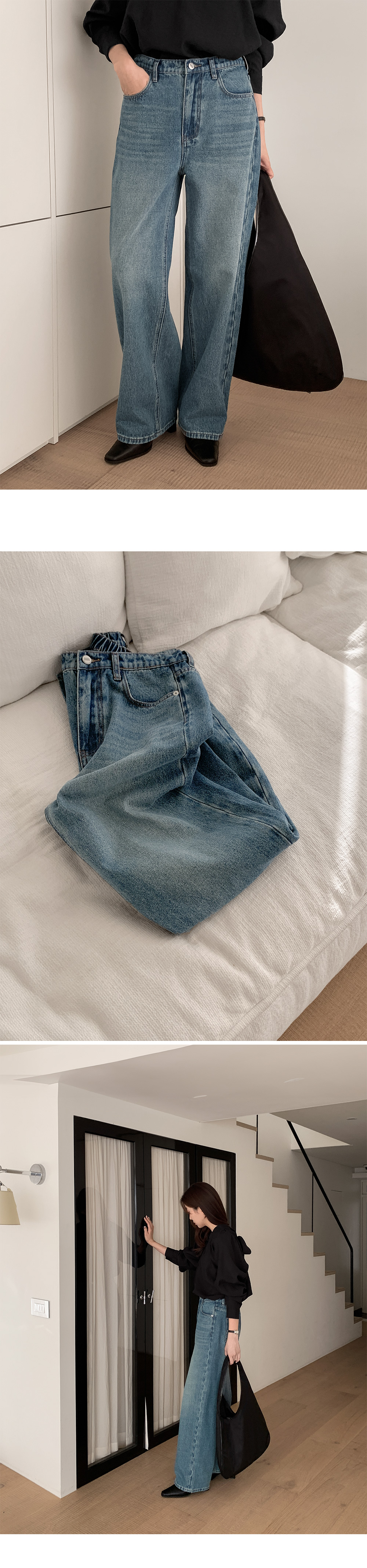체형커버에 최적화된 와이드라인의 데님 팬츠로,