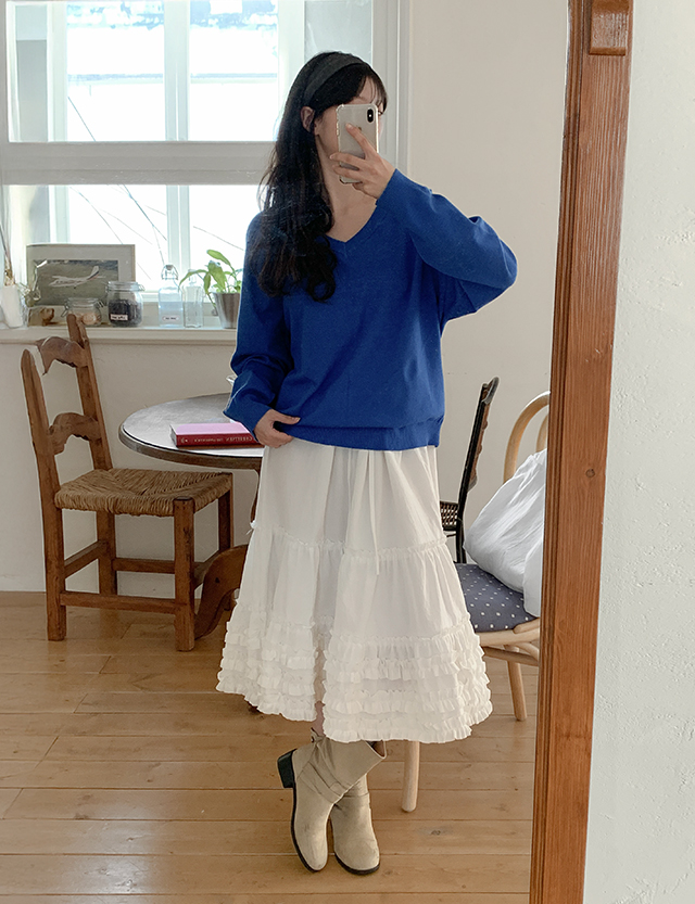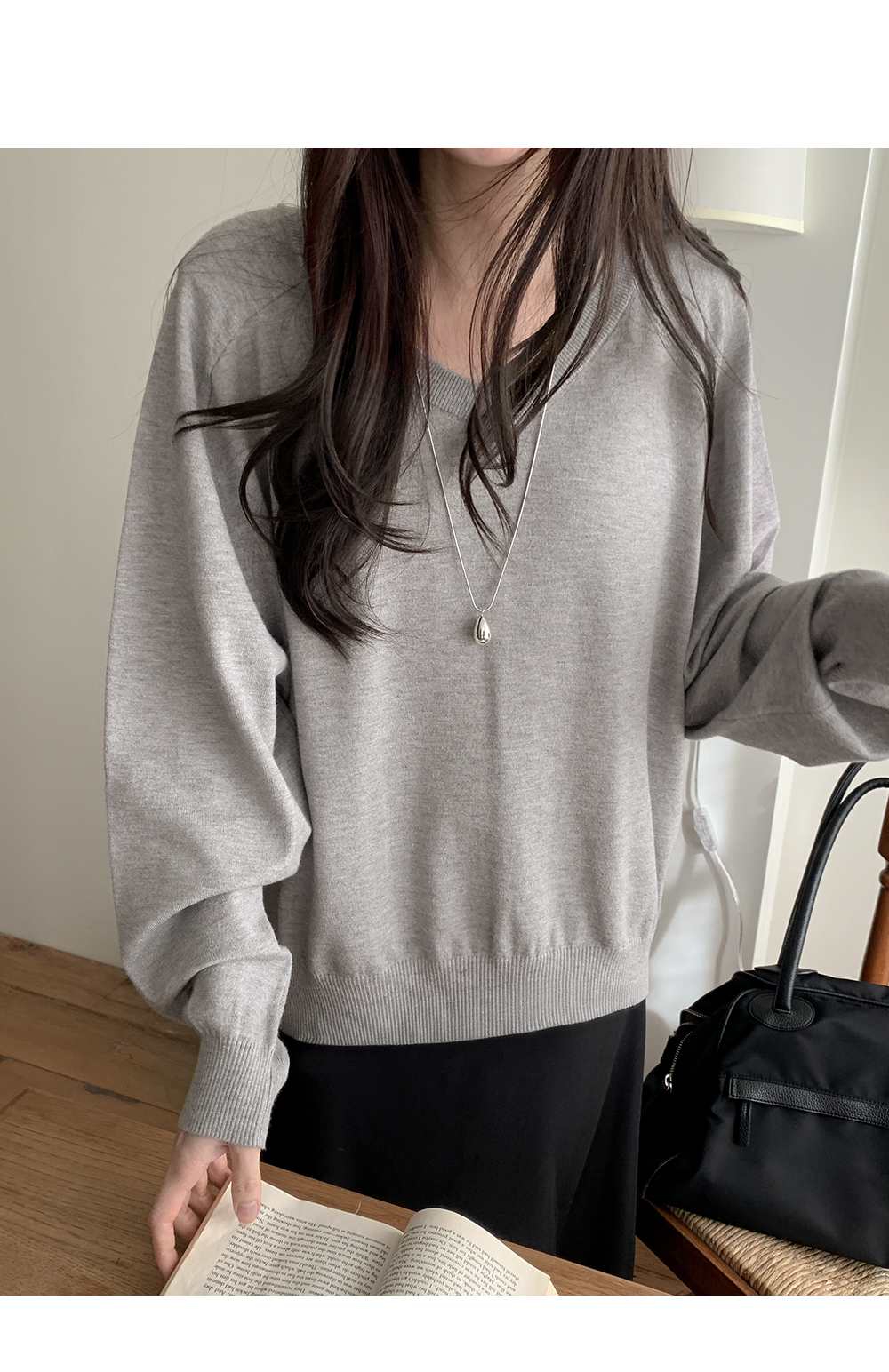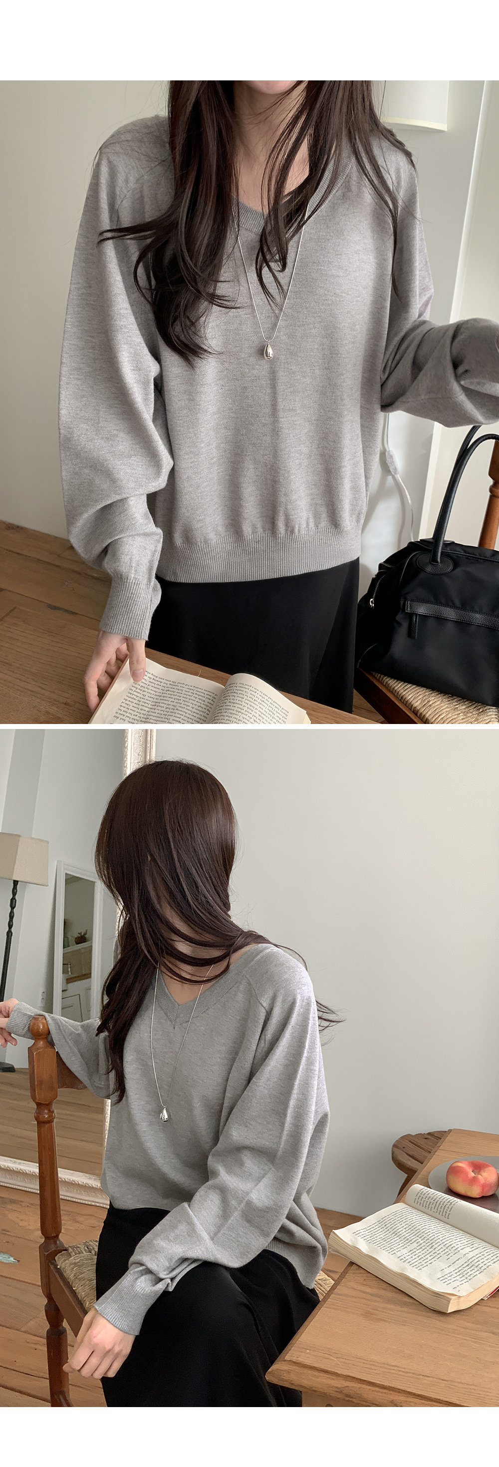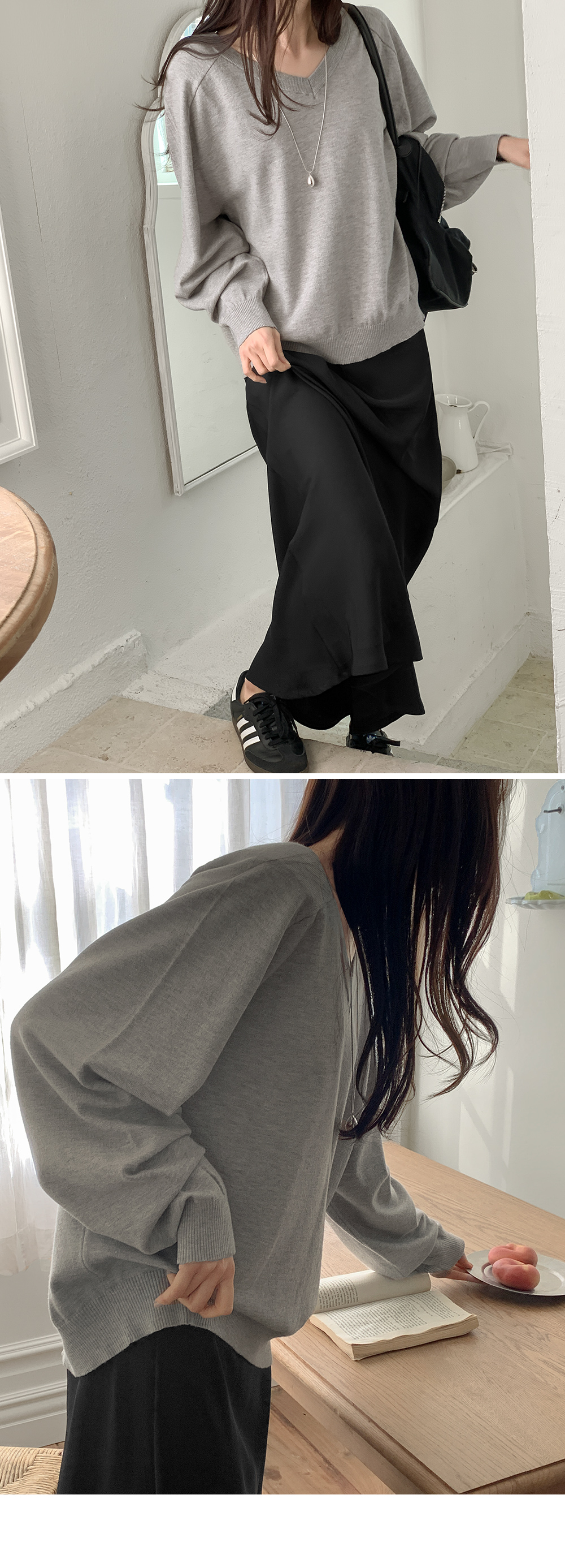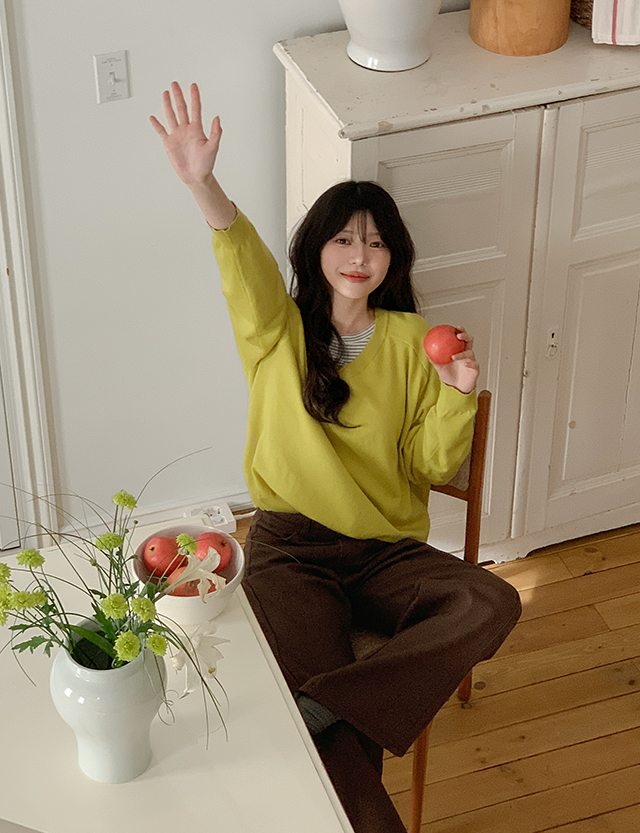 - 깊지 않은 브이넥 라인으로 부담 없음