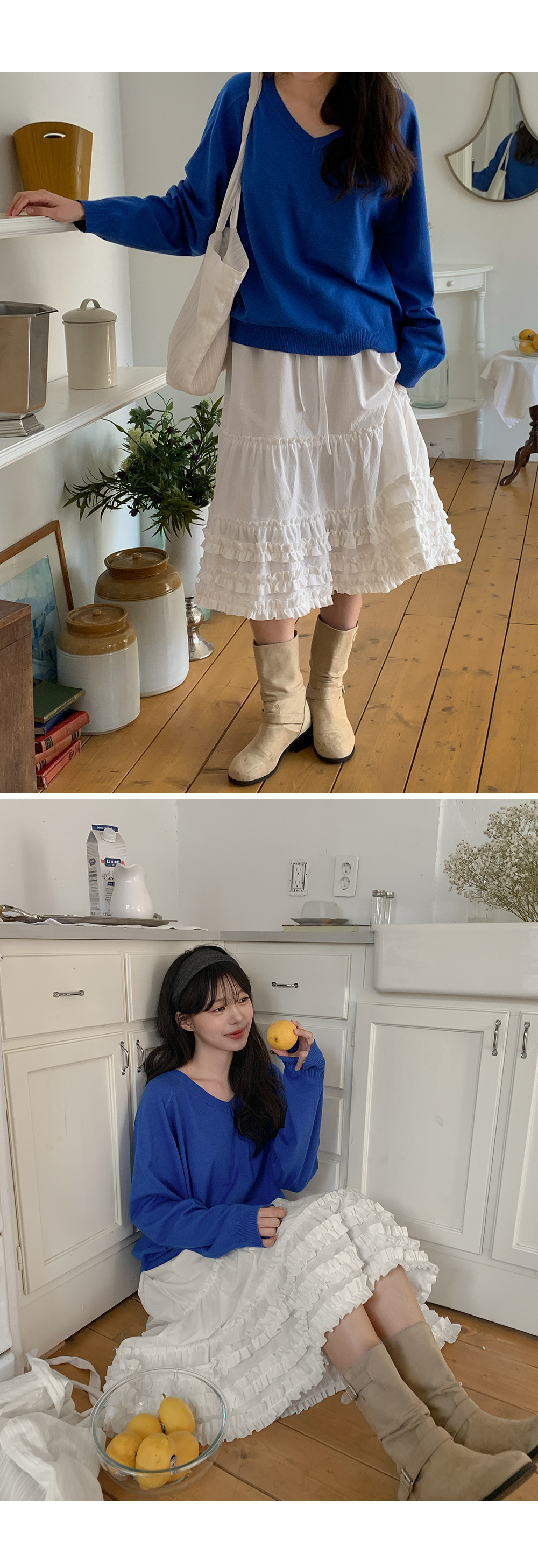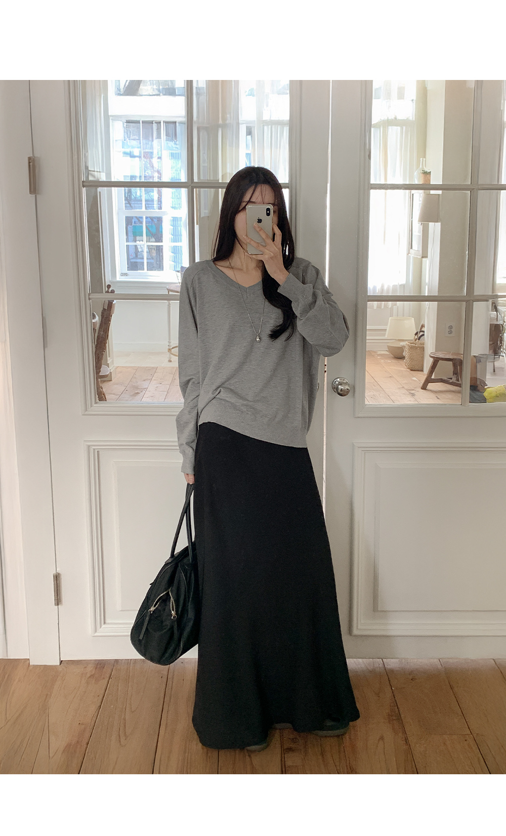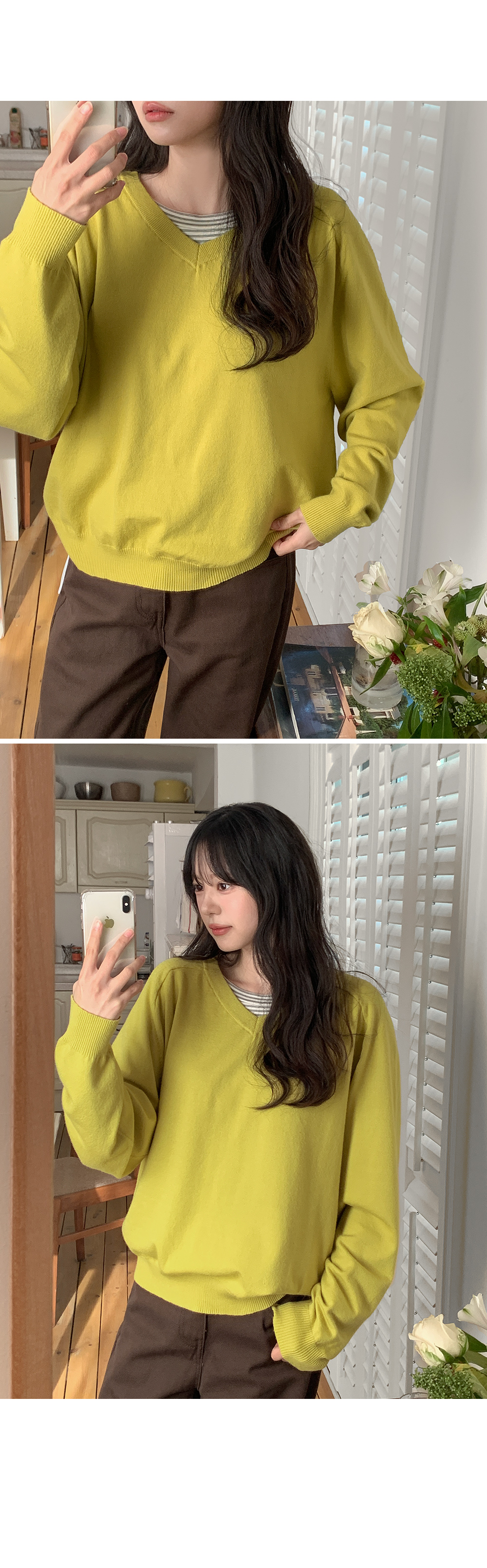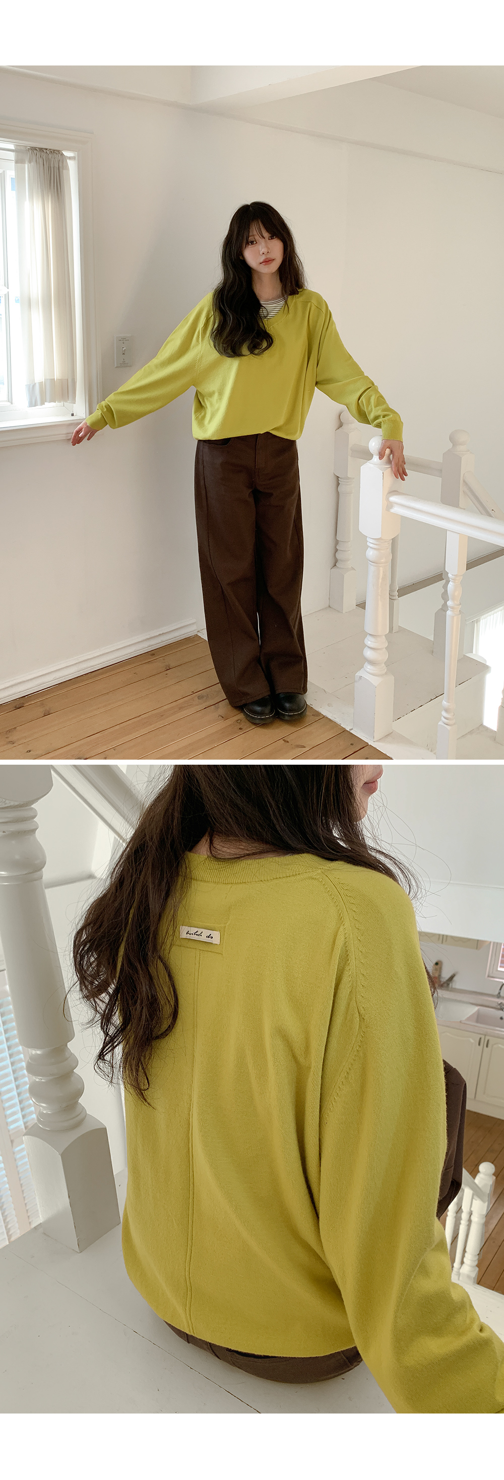 - 깊지 않은 브이넥 라인으로 부담 없음