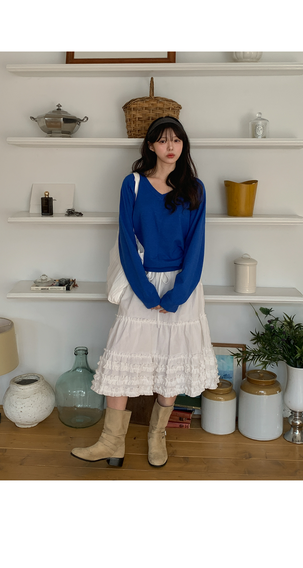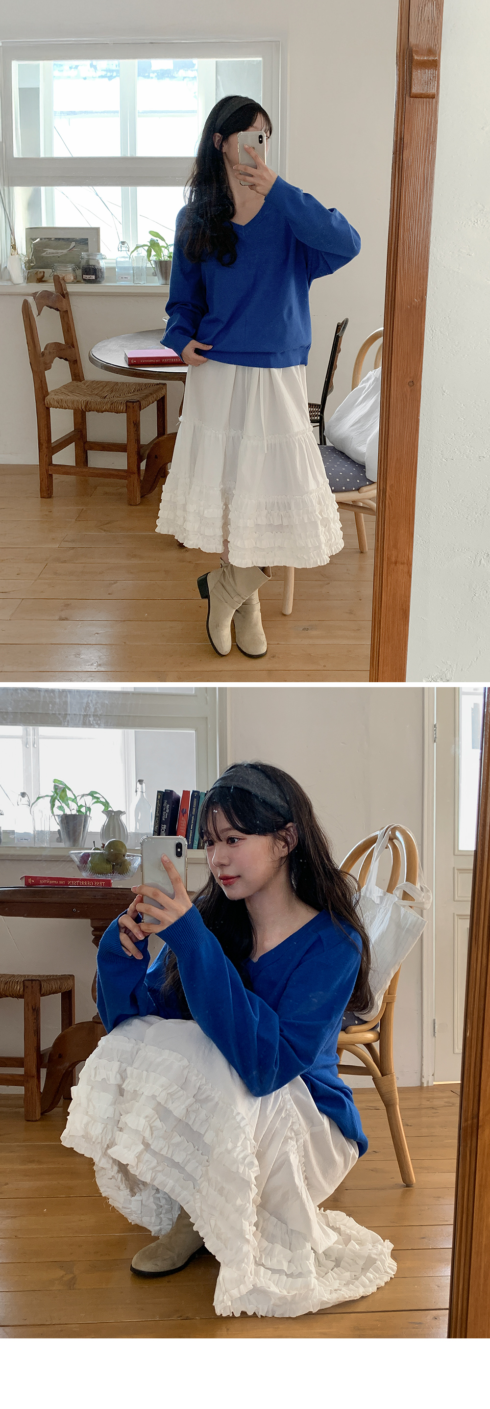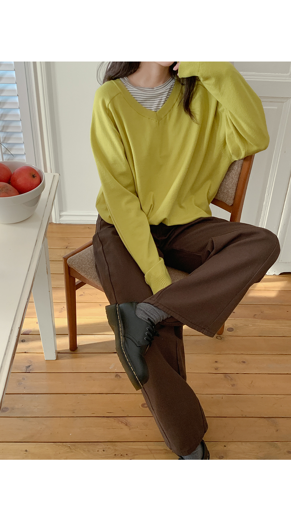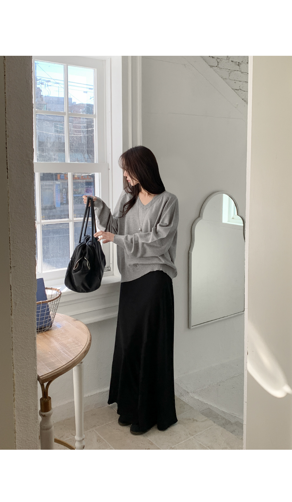 - 깊지 않은 브이넥 라인으로 부담 없음