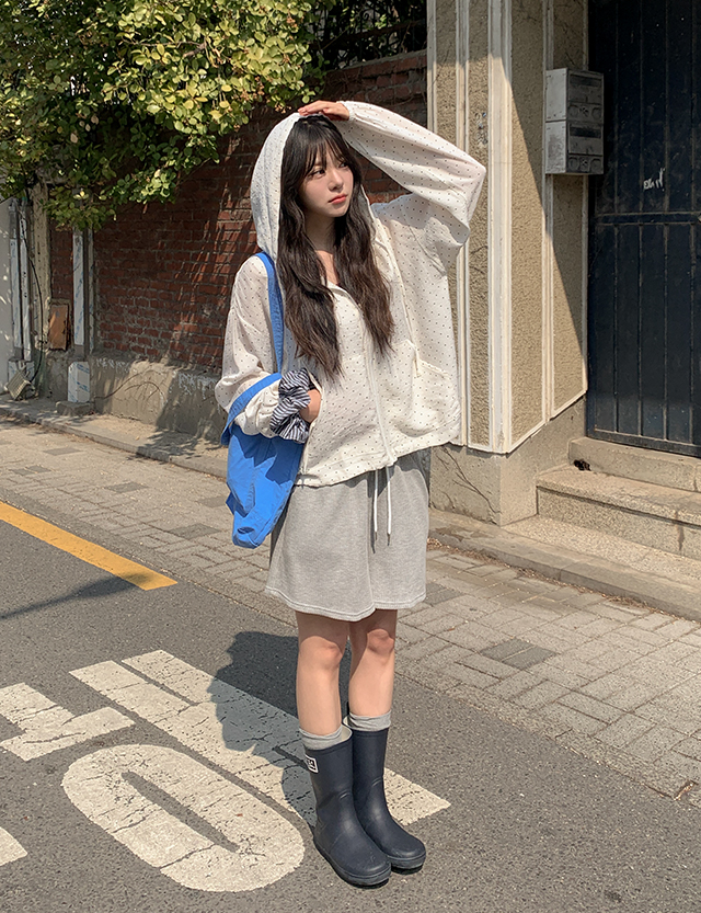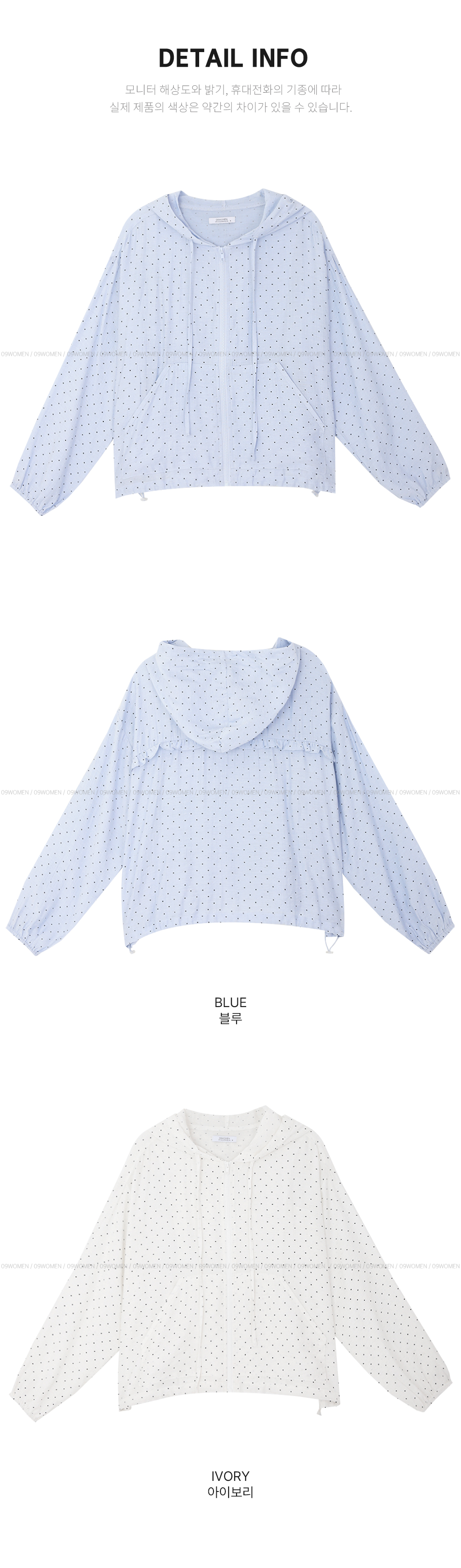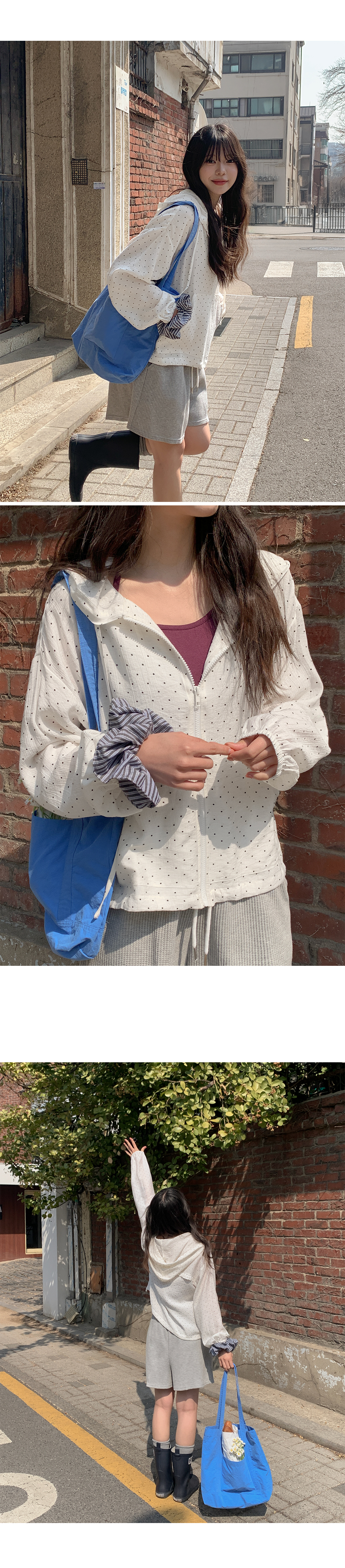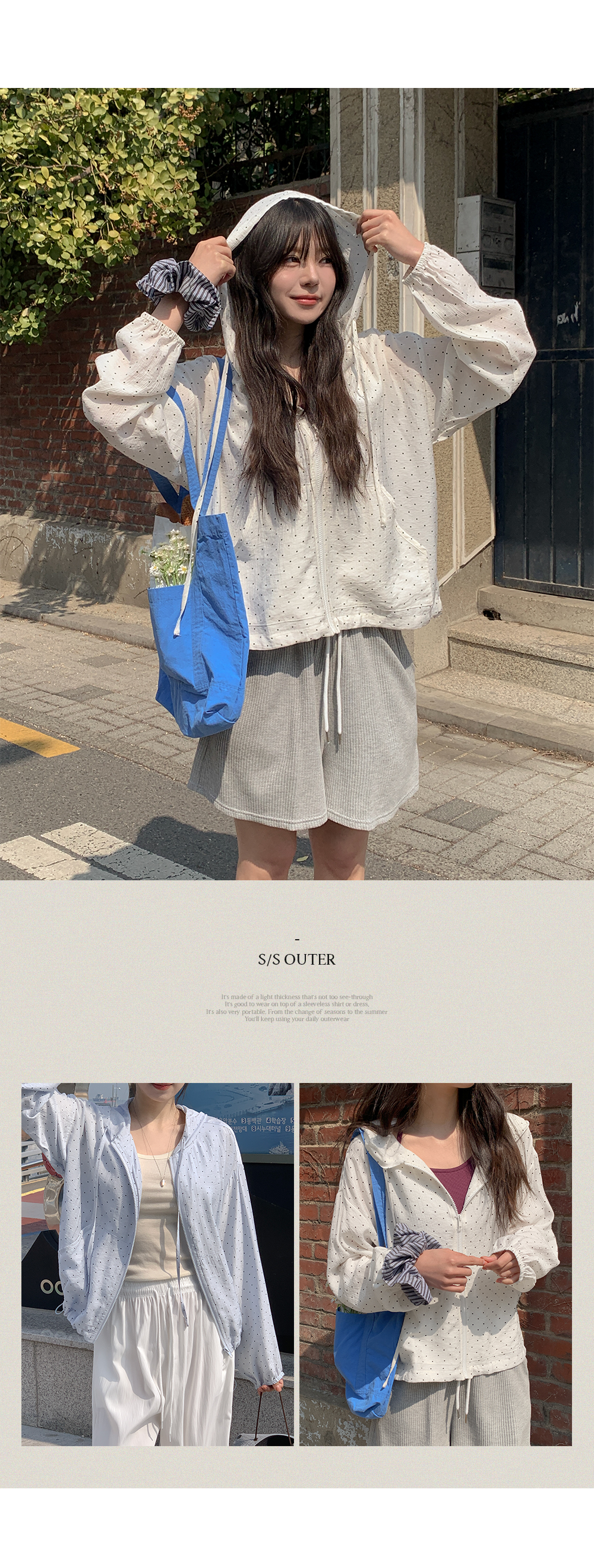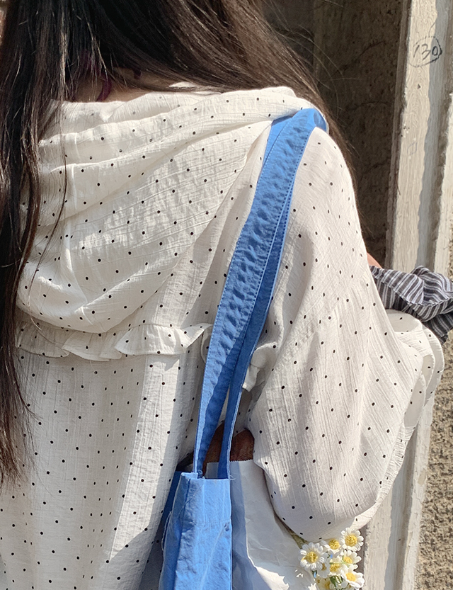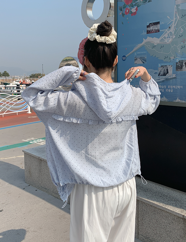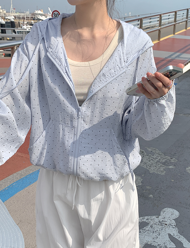잔잔한 도트 패턴이 더해진 가벼운 후드 집업이에요.