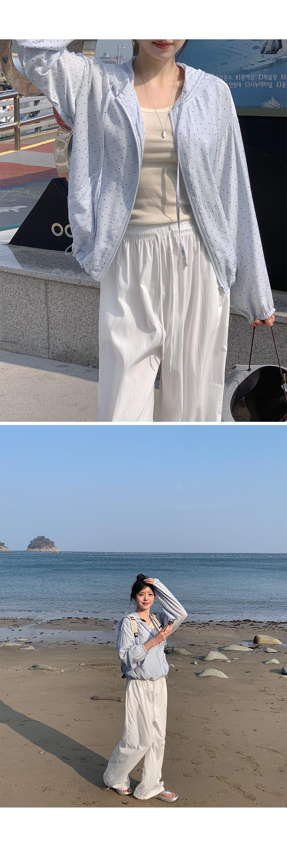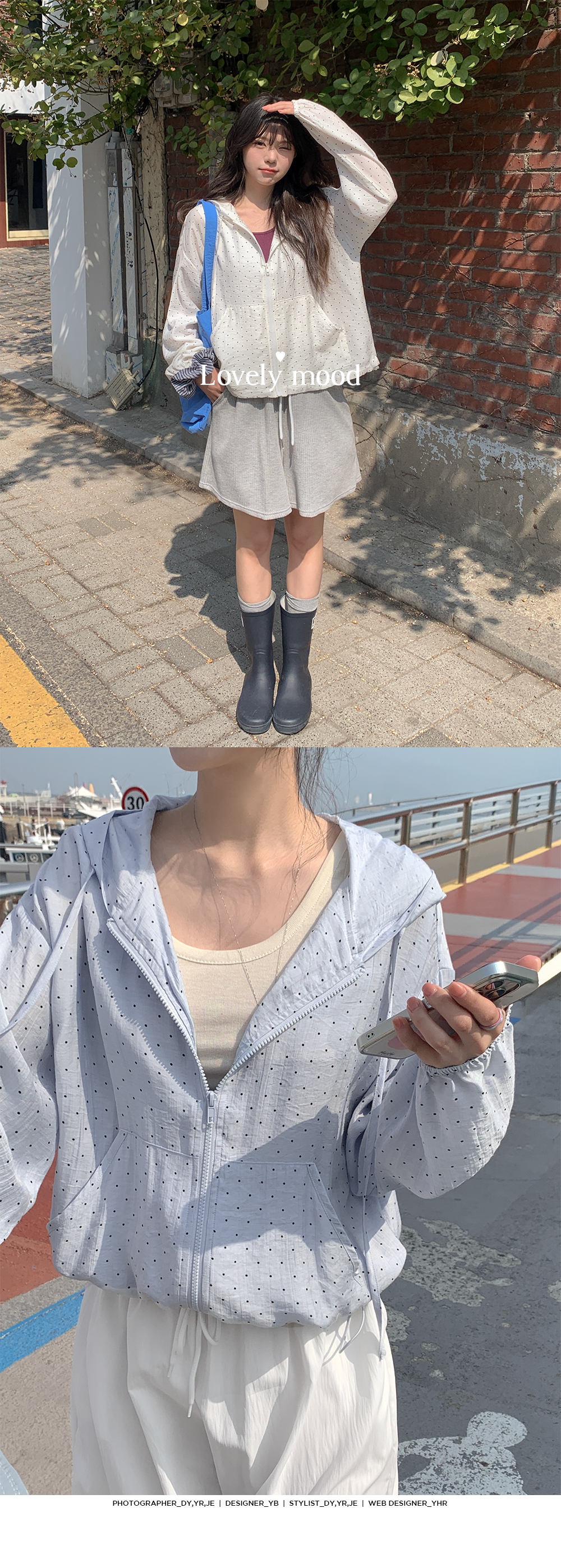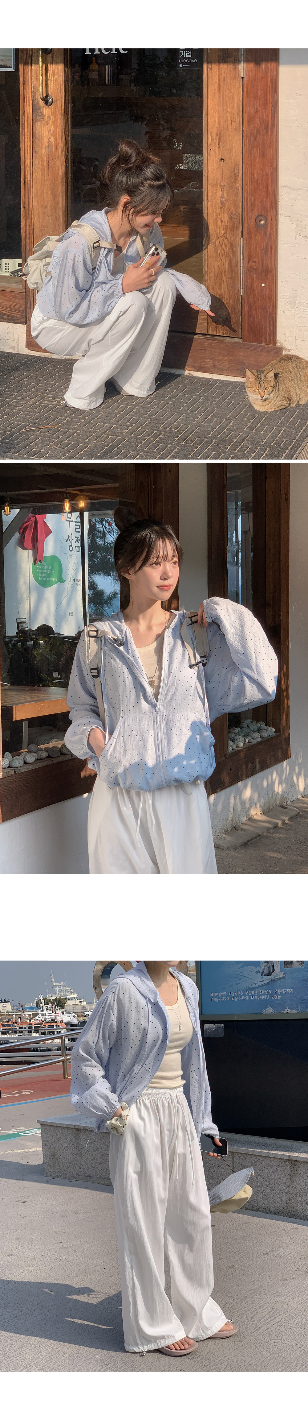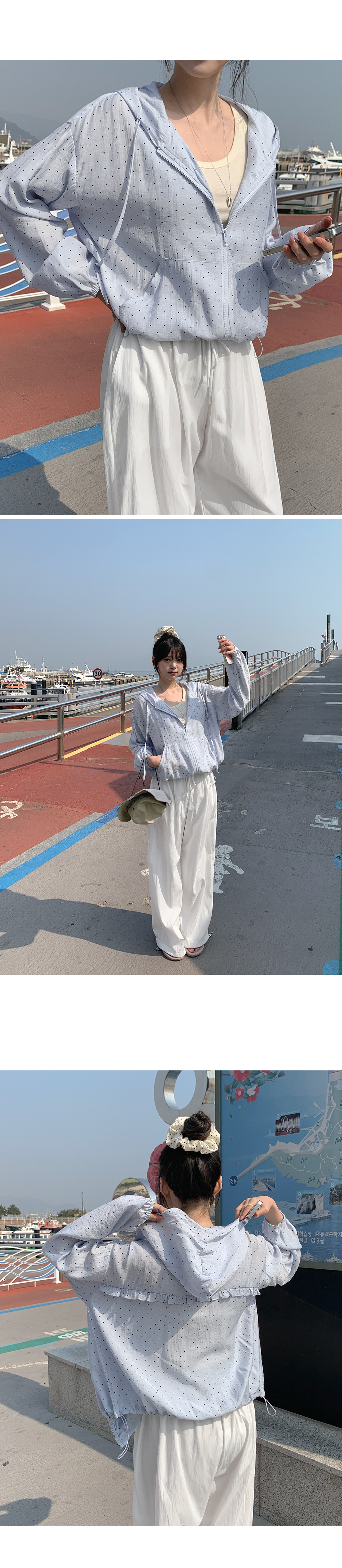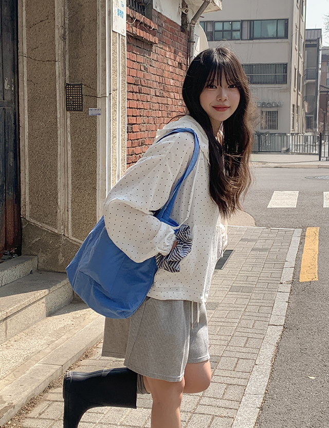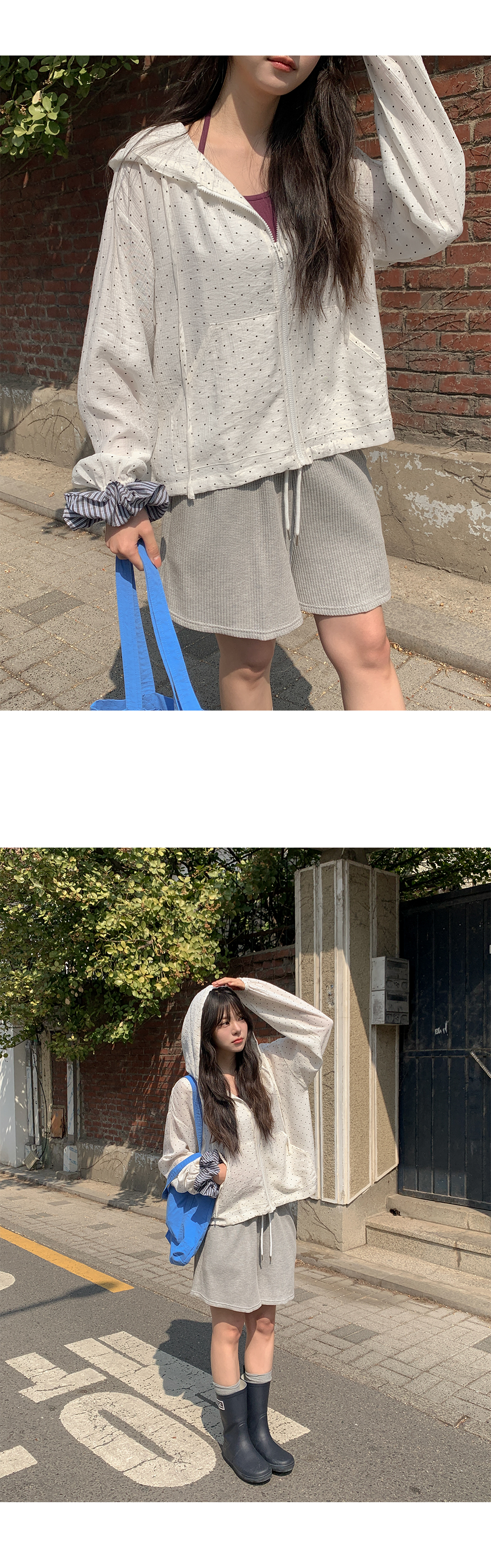 잔잔한 도트 패턴이 더해진 가벼운 후드 집업이에요.