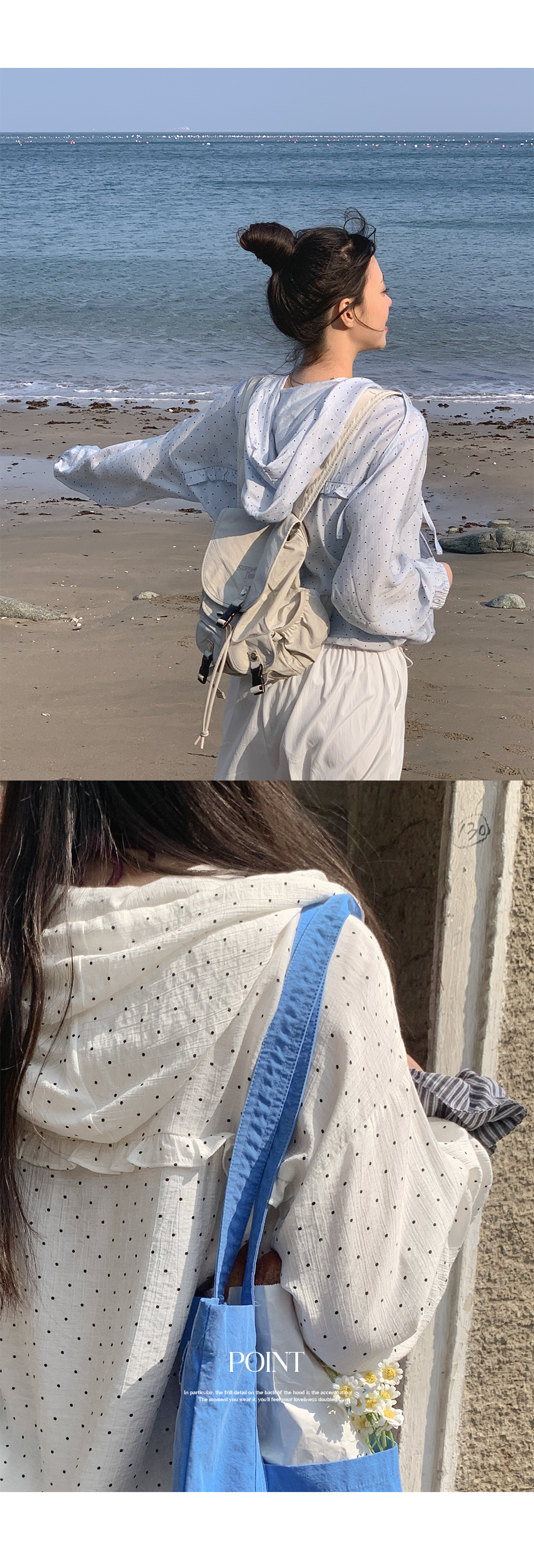 특히 후드 뒷면에 프릴 디테일이 포인트가 되어주어,