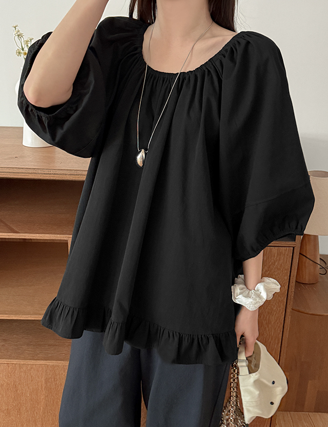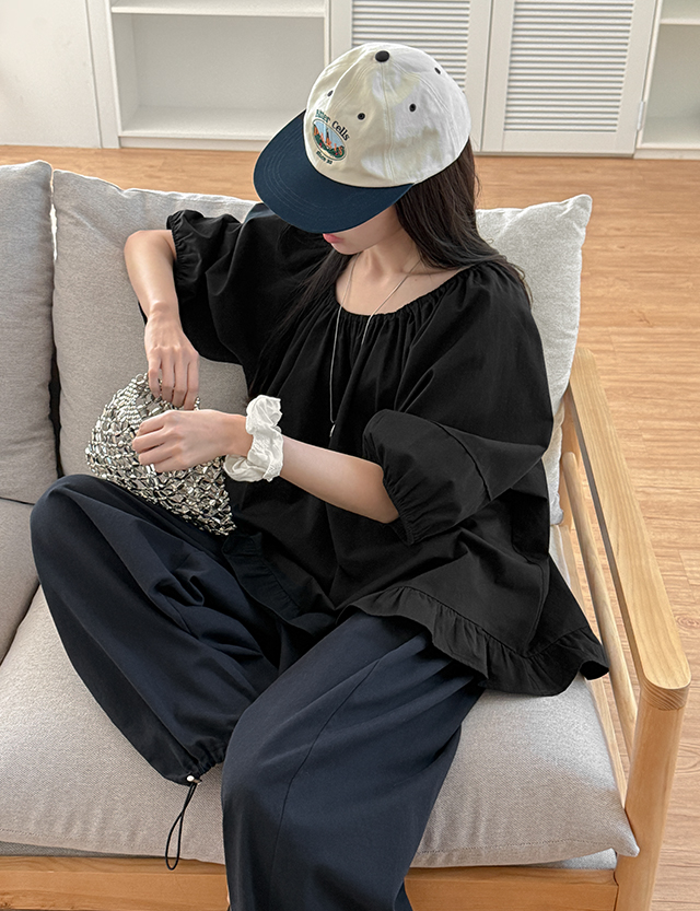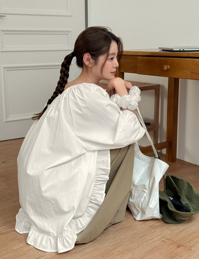 - 밑단에 프릴 포인트로 추가해 러블리한 분위기와