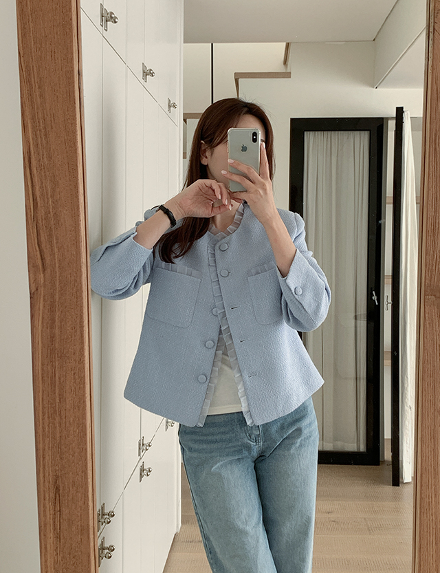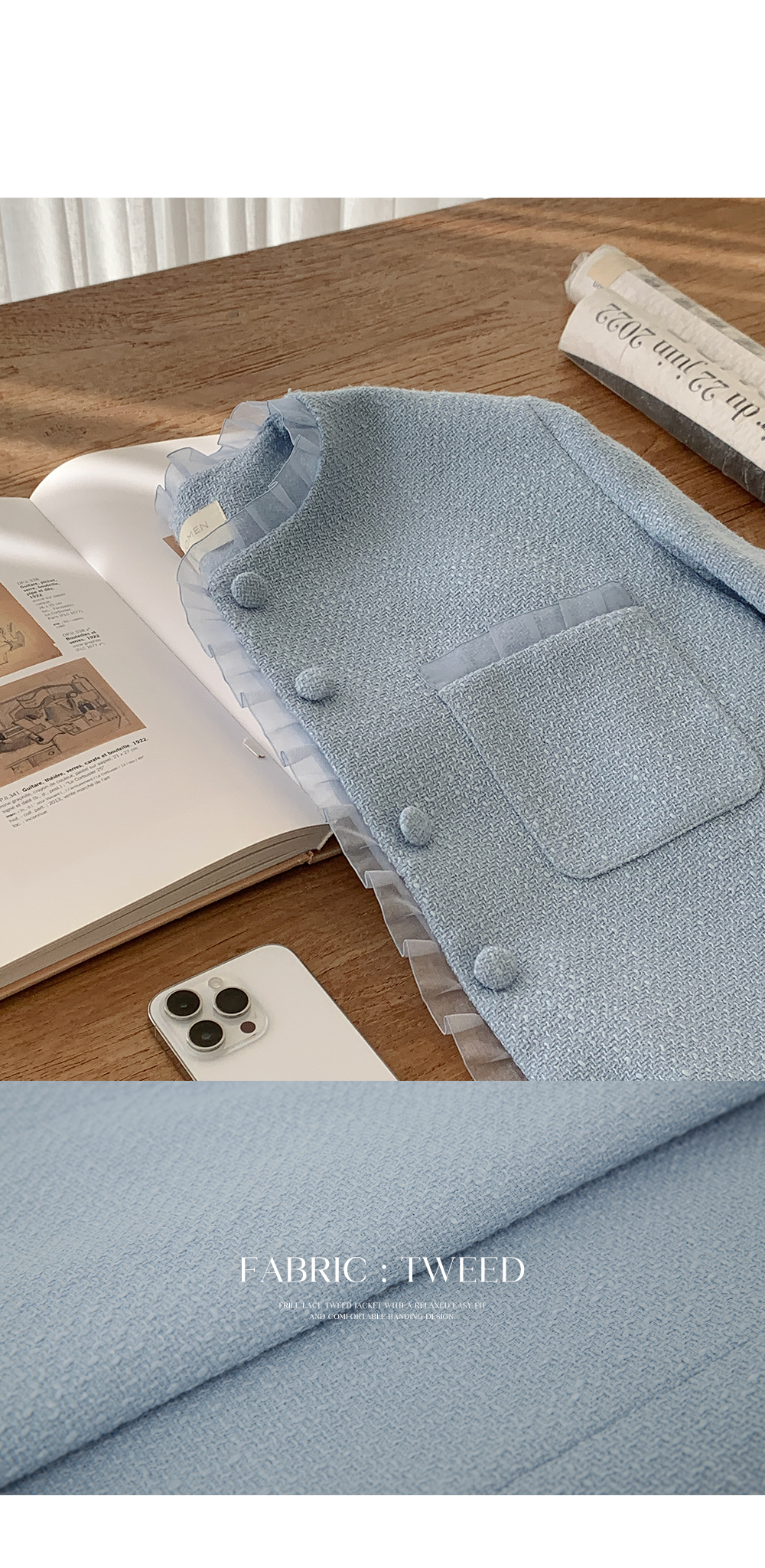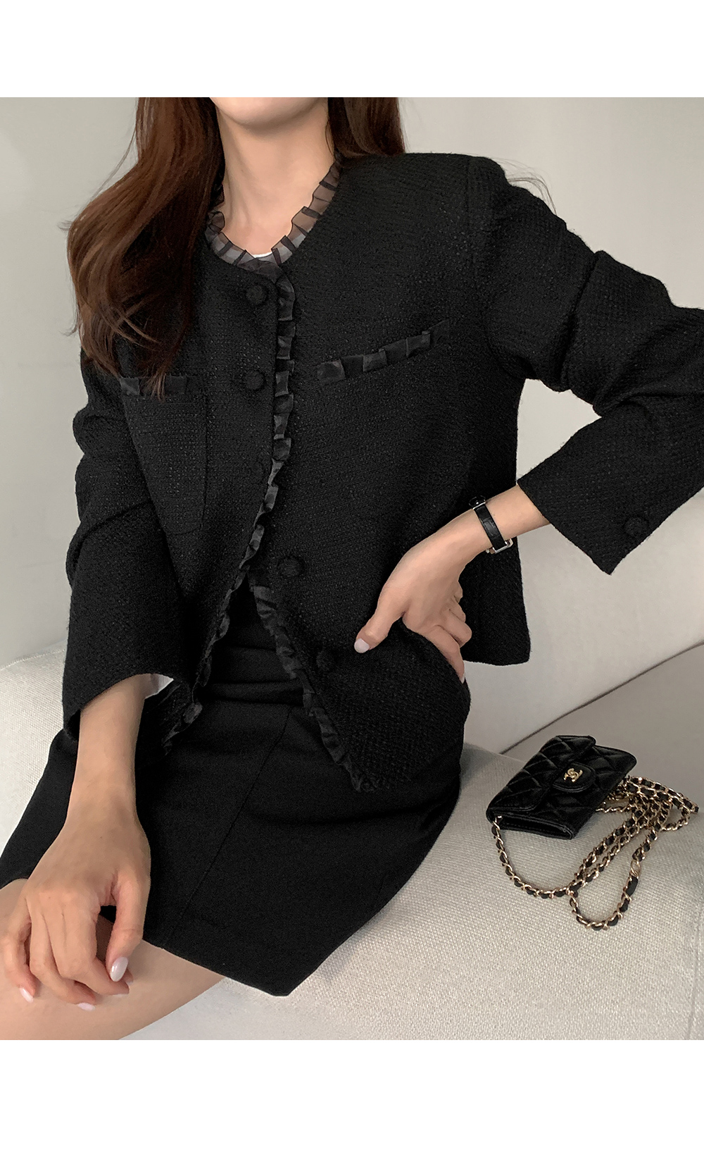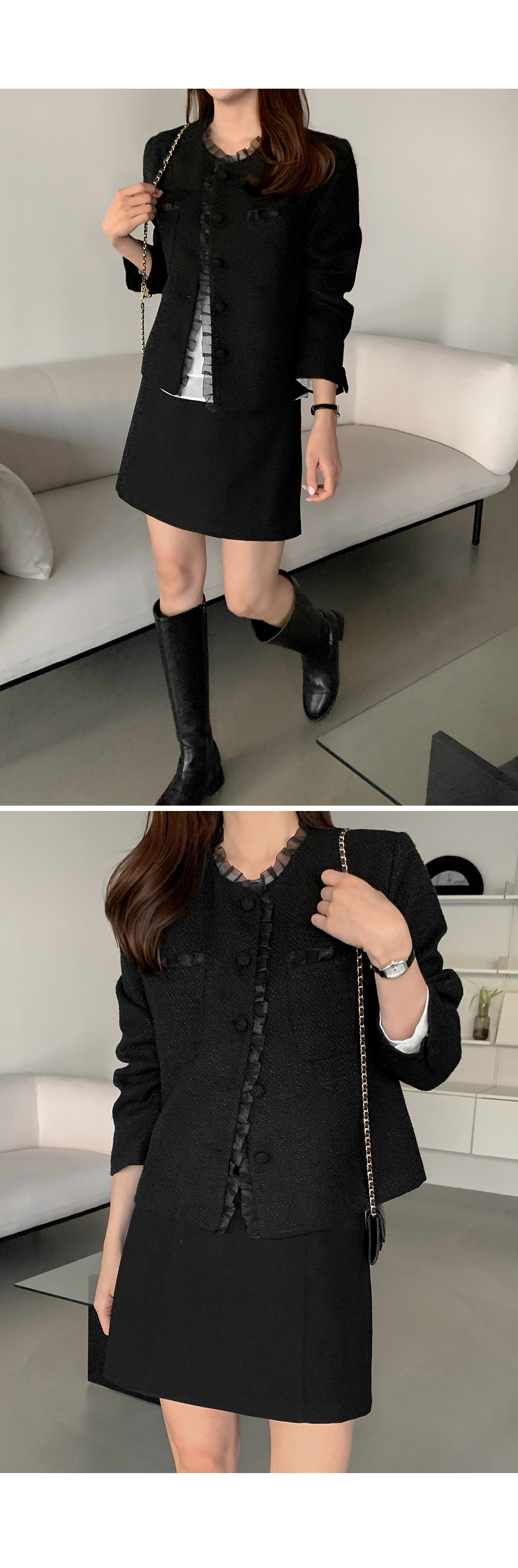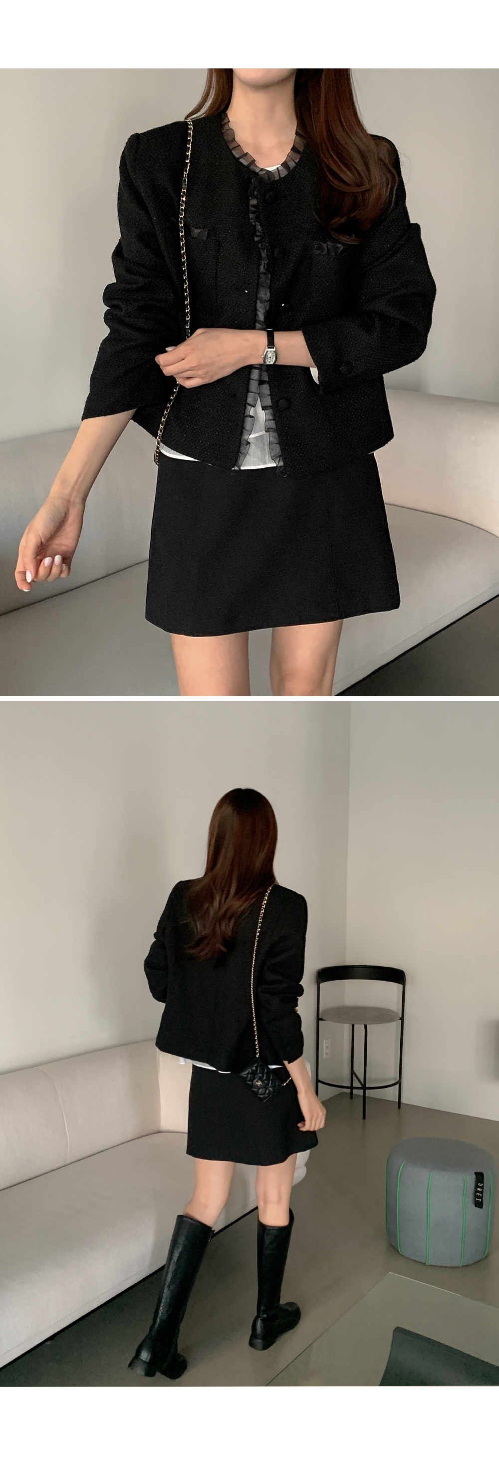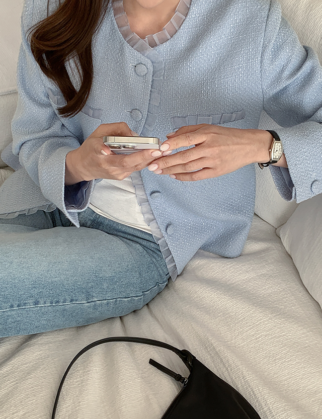 - 클래식한 트위드 텍스처로 고급스러운 분위기