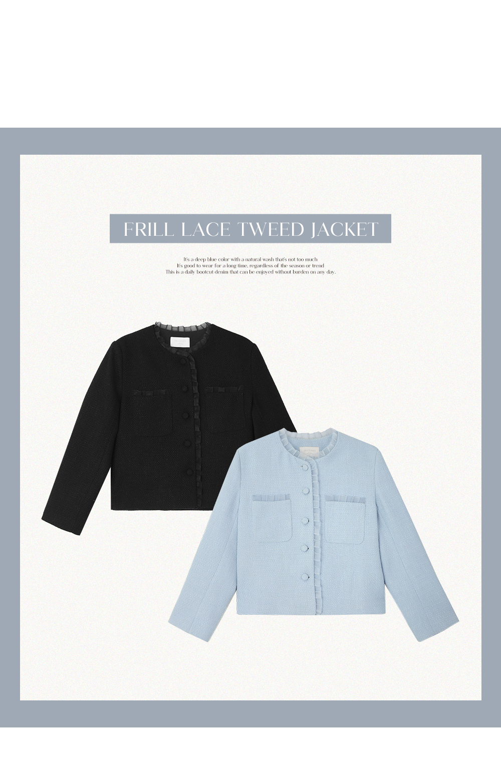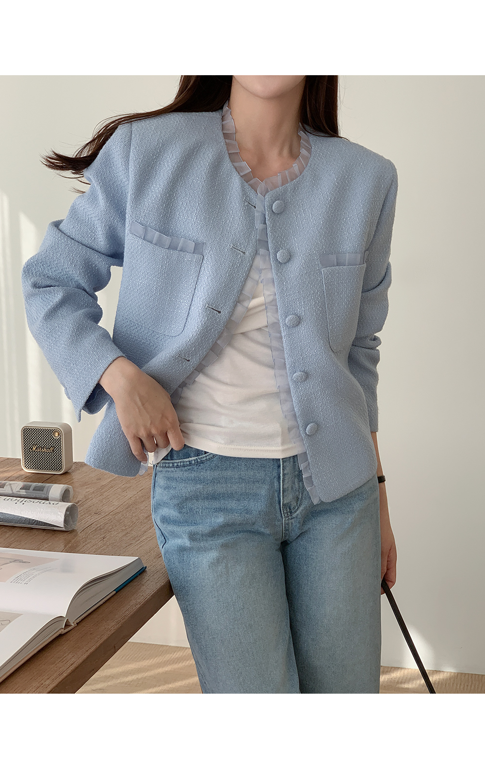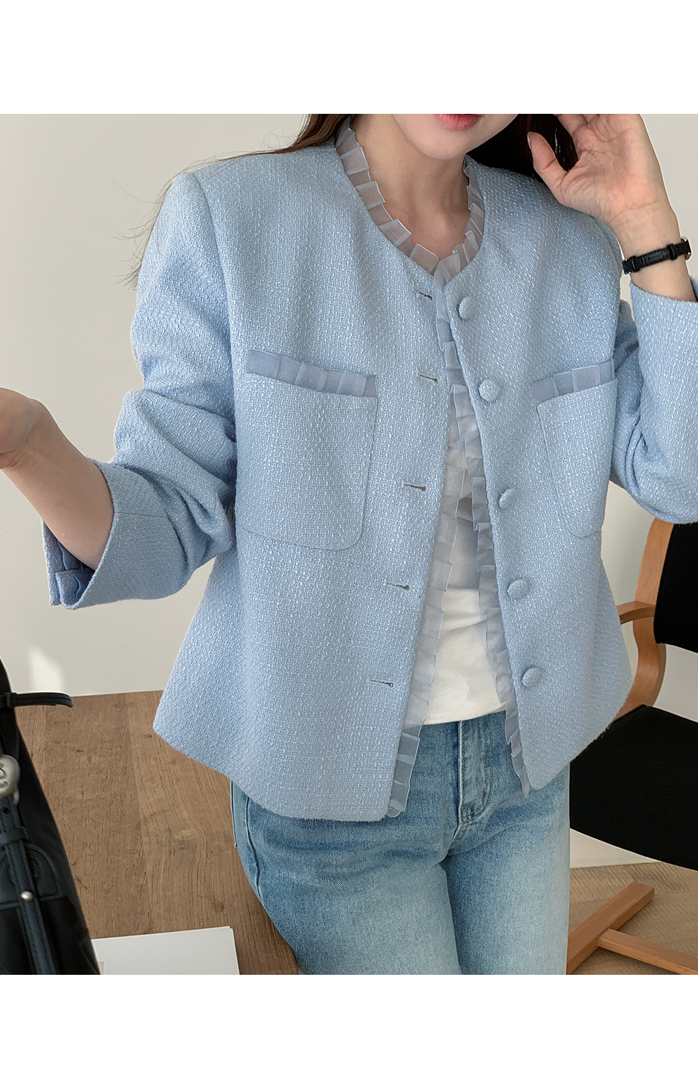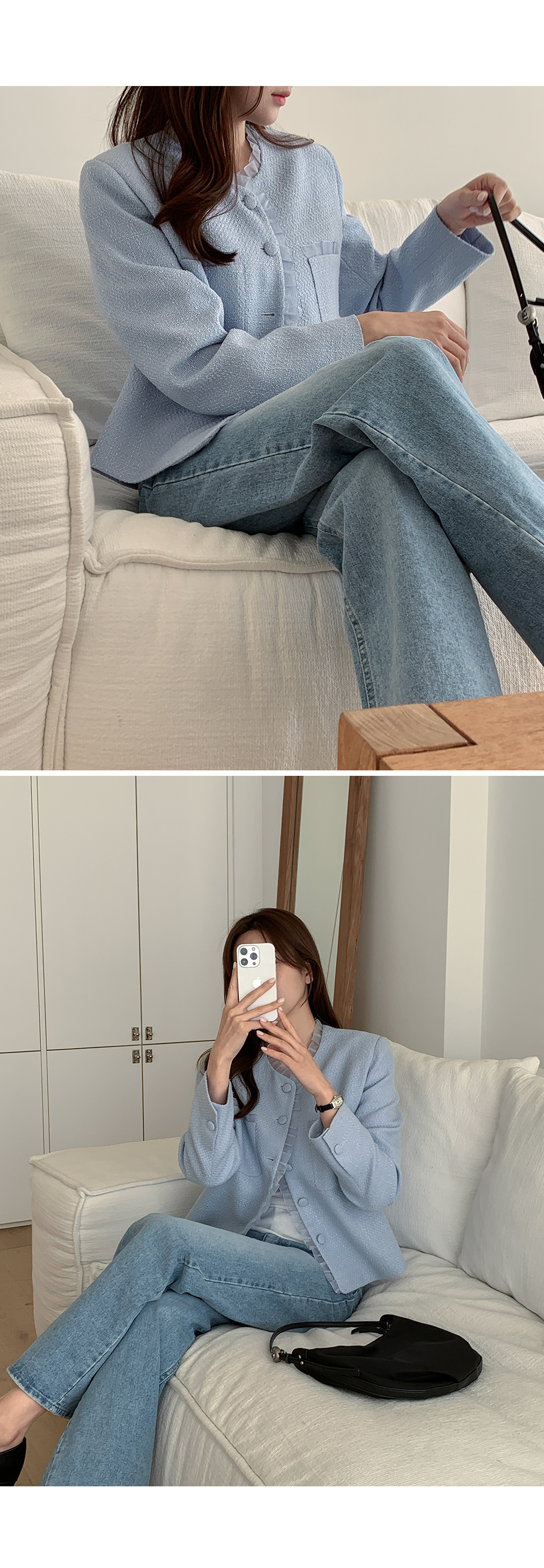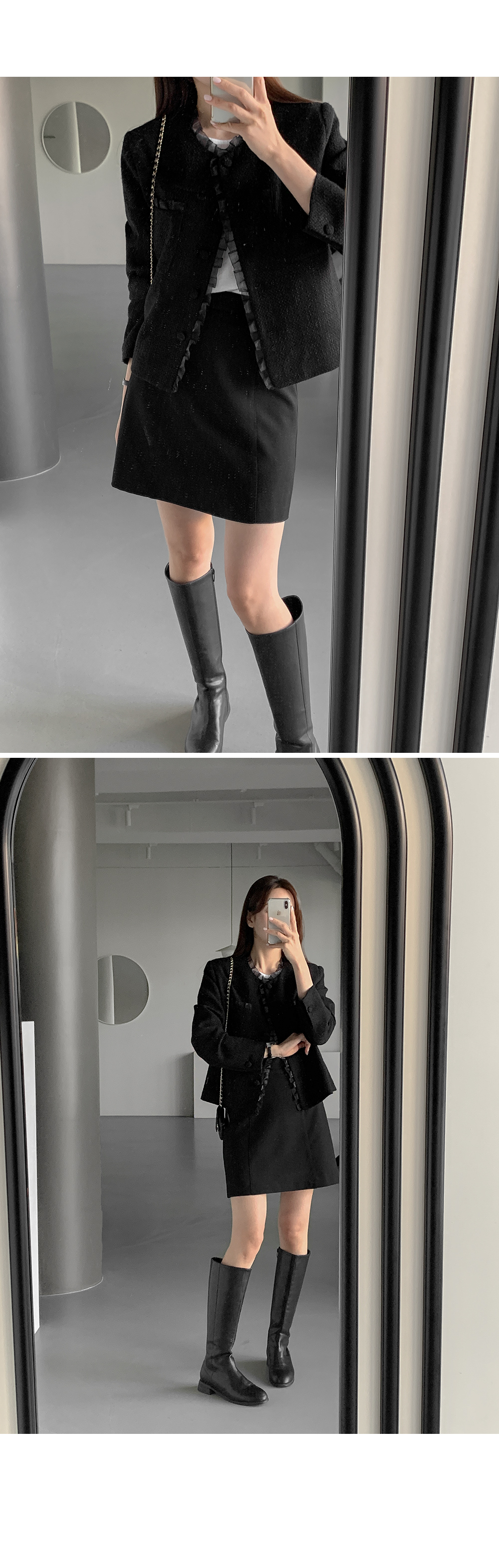 - 클래식한 트위드 텍스처로 고급스러운 분위기