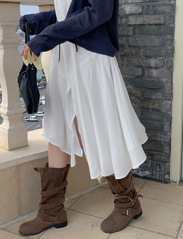 - 허리는 슬림하게 잡아주고 밑단은 훌 디테일로 퍼져 날씬하고 멋스러운 실루엣 연출
