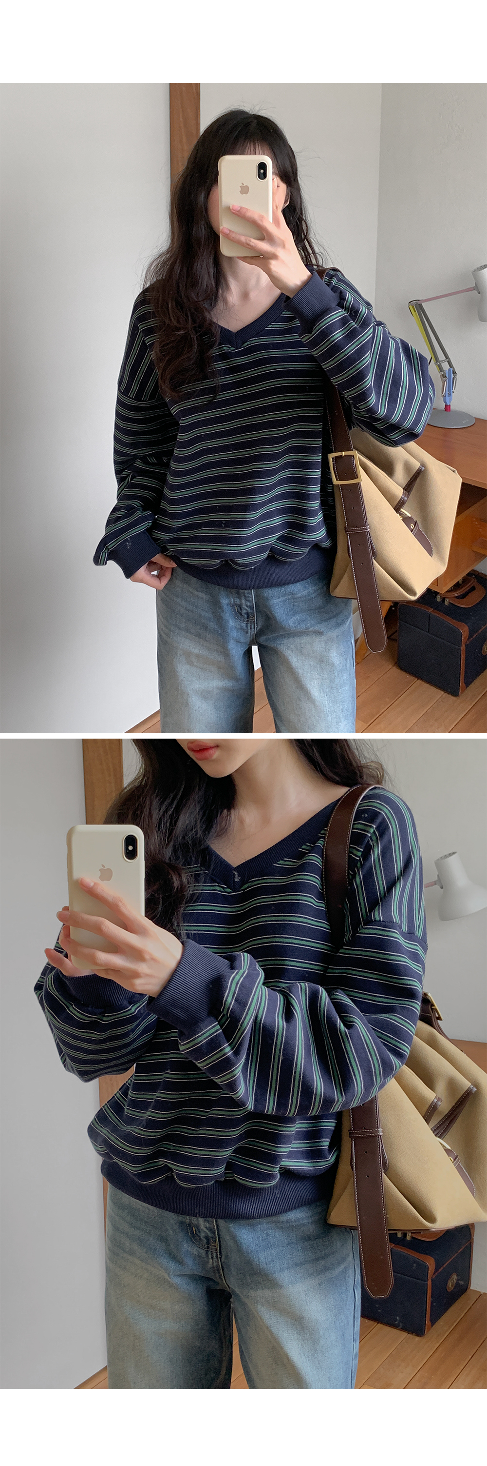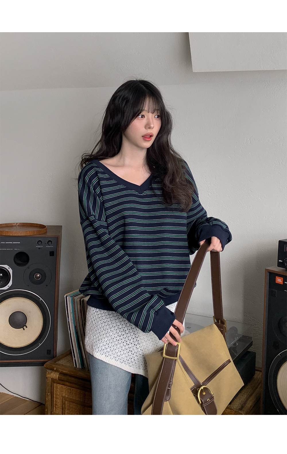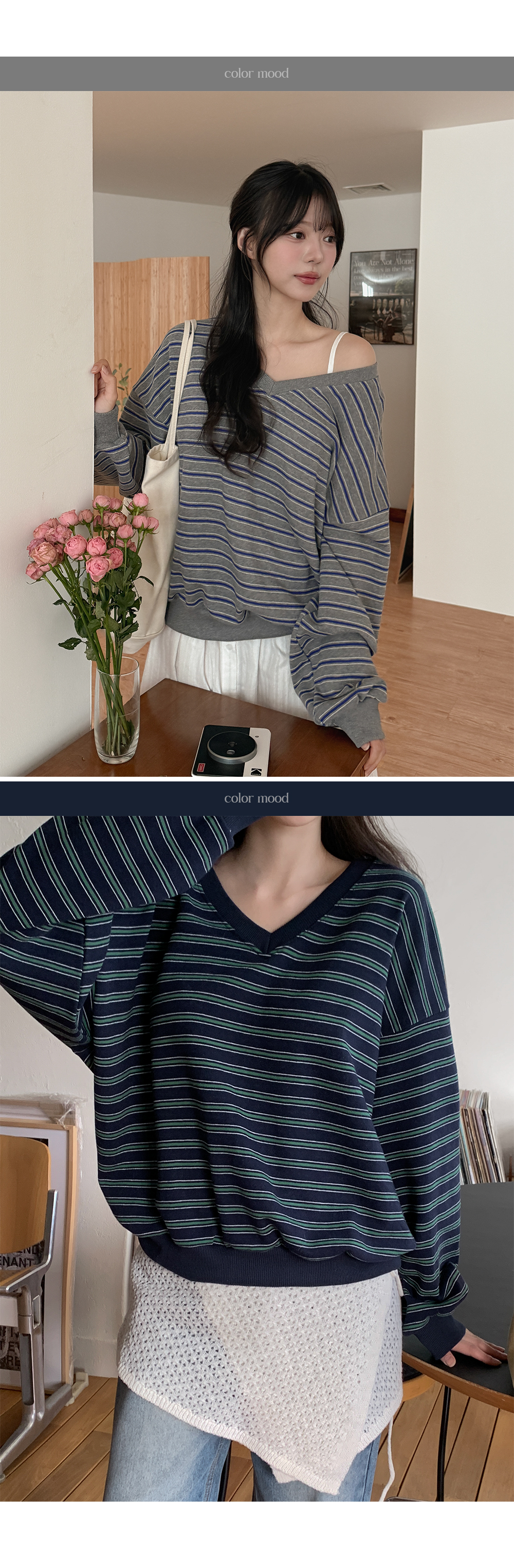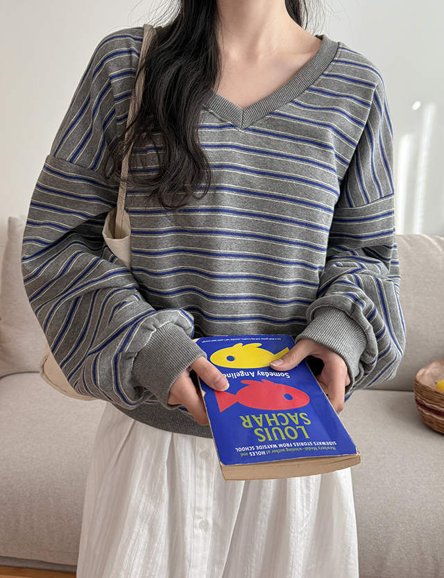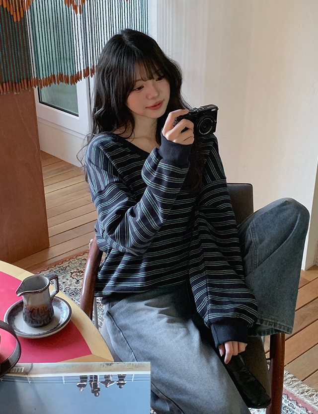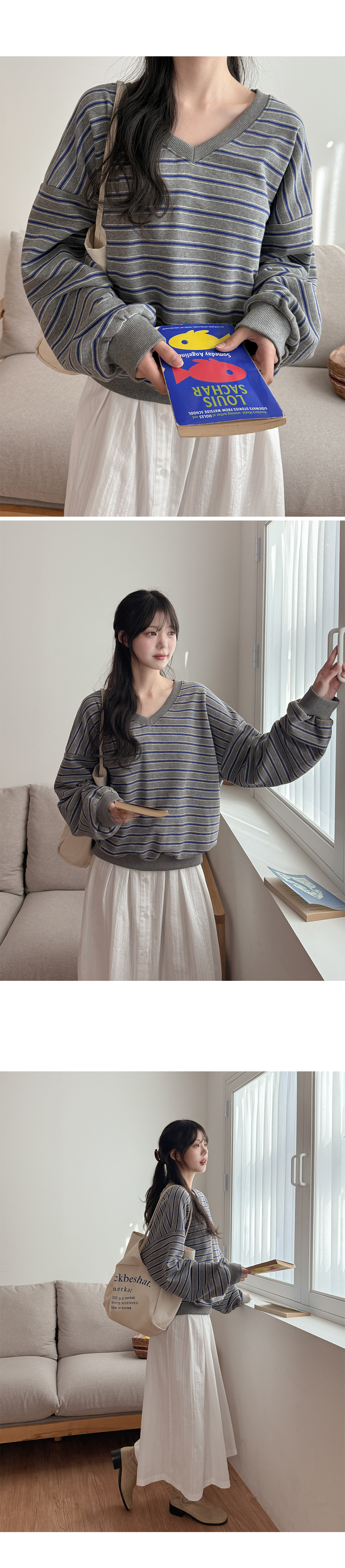 쇄골 라인이 은은하게 드러나는 브이넥 디자인으로