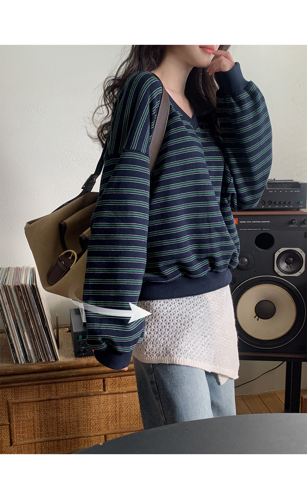 핀 스트라이프 패턴으로 빈티지한 무드를 가득 담았습니다