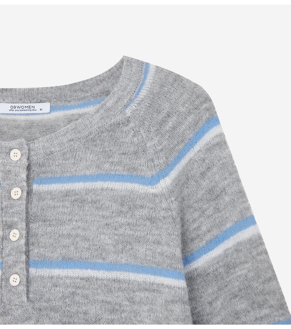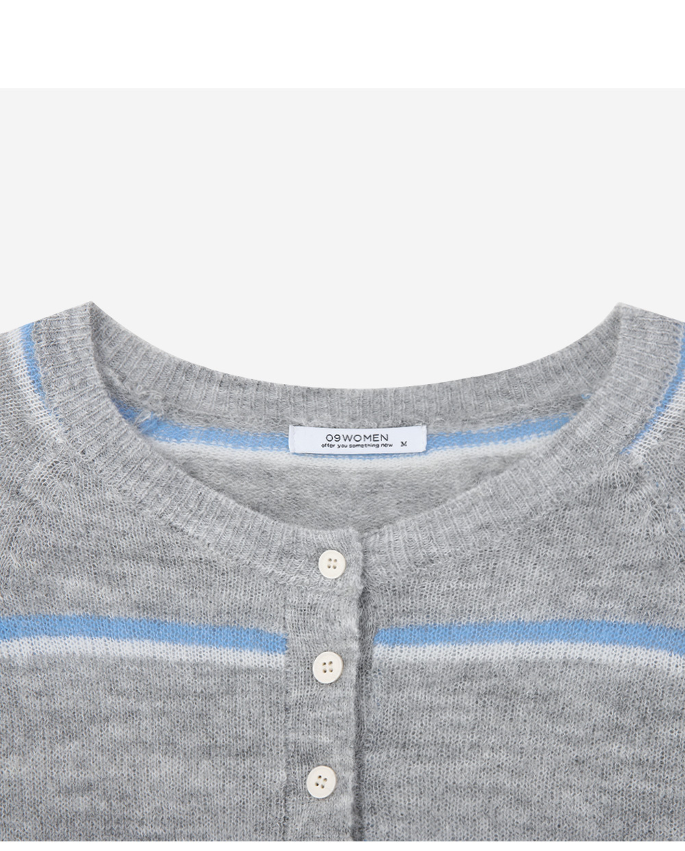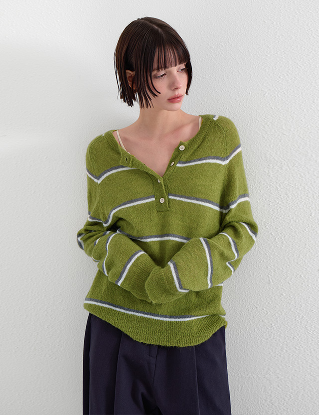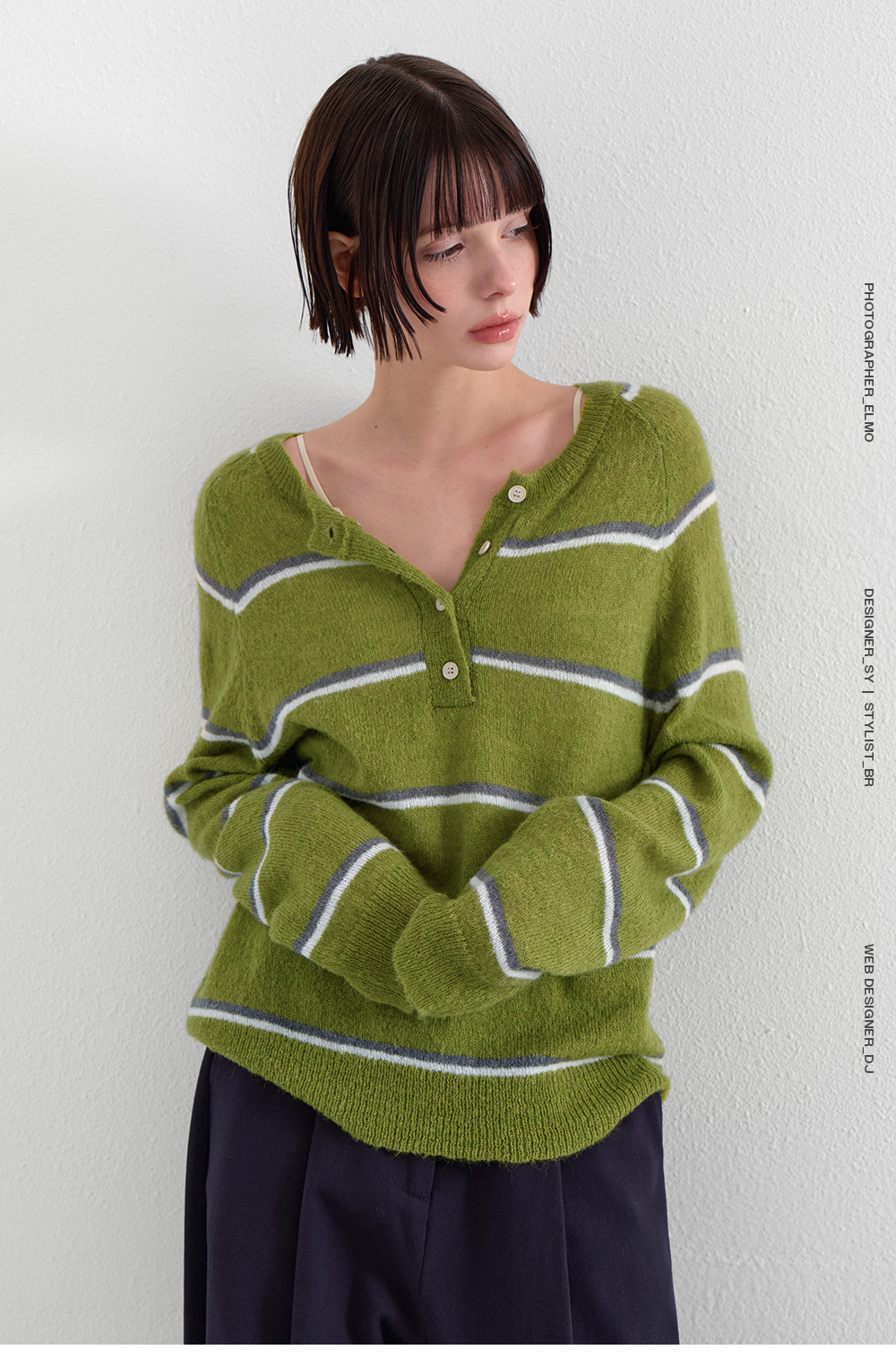 · 단추 디테일이 더해진 넥 라인으로 단독·레이어드 모두 쉬운 스타일링