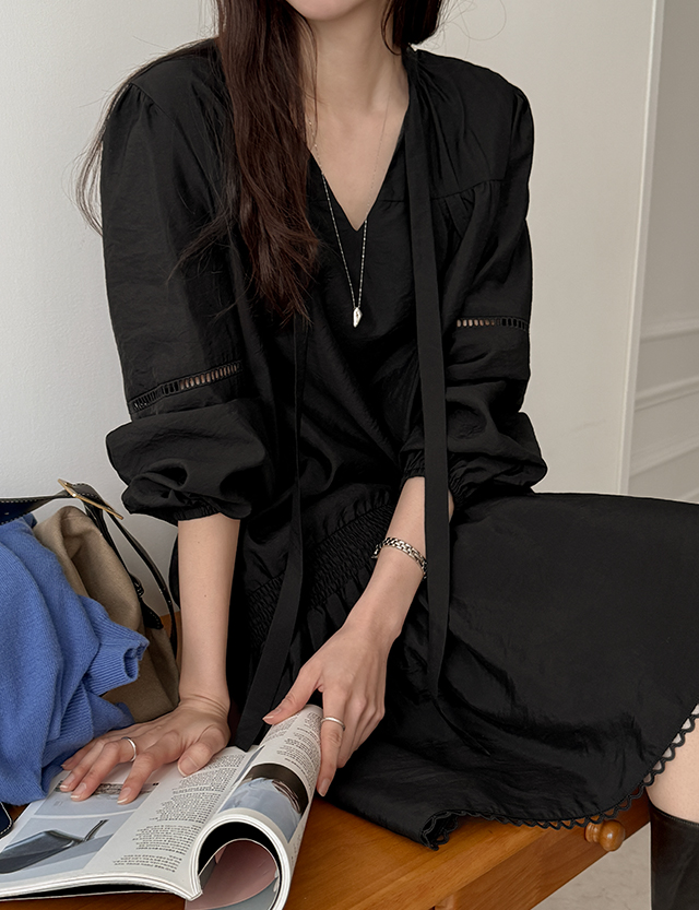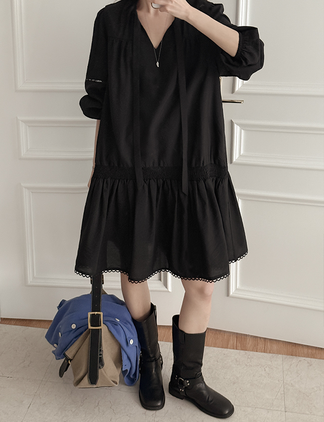 - 전체적으로 셔링이 잡혀 사랑스러운 샤랄라 원피스