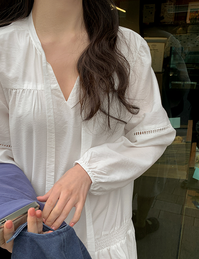 쇄골 라인을 은은하게 드러내는 트임 넥과