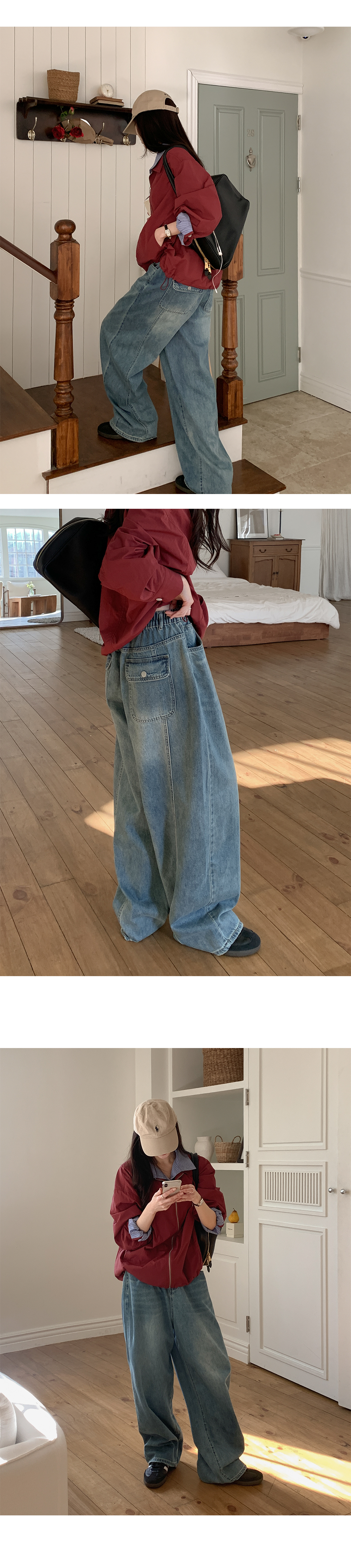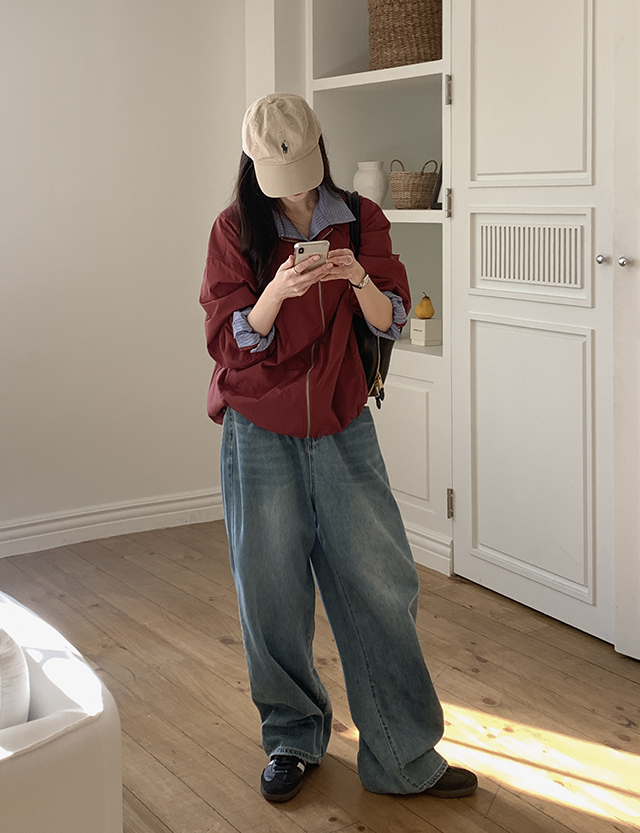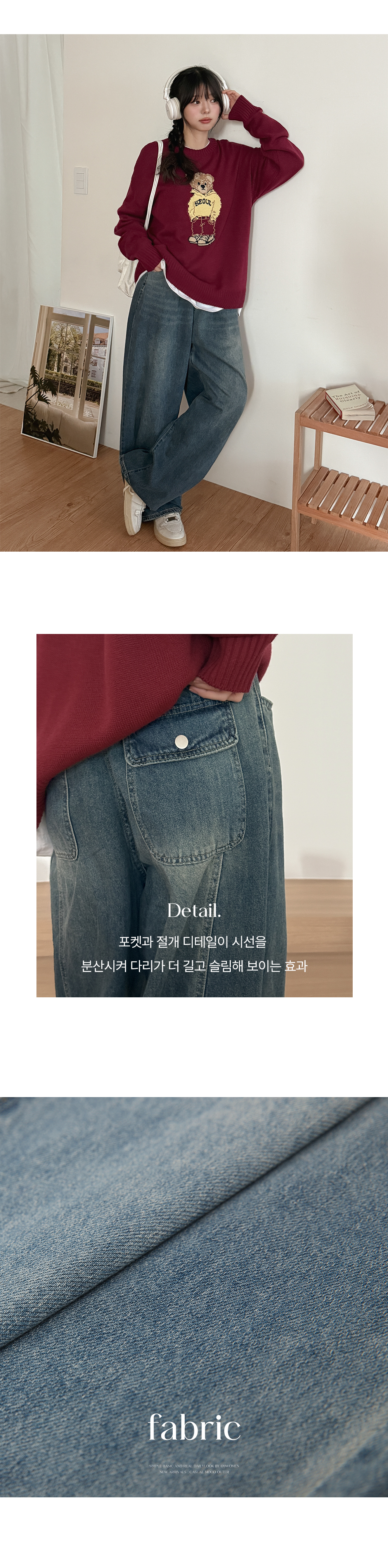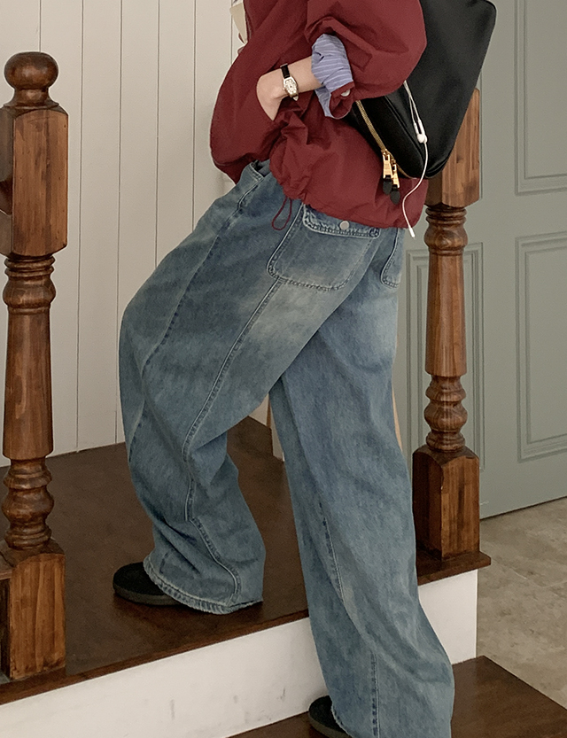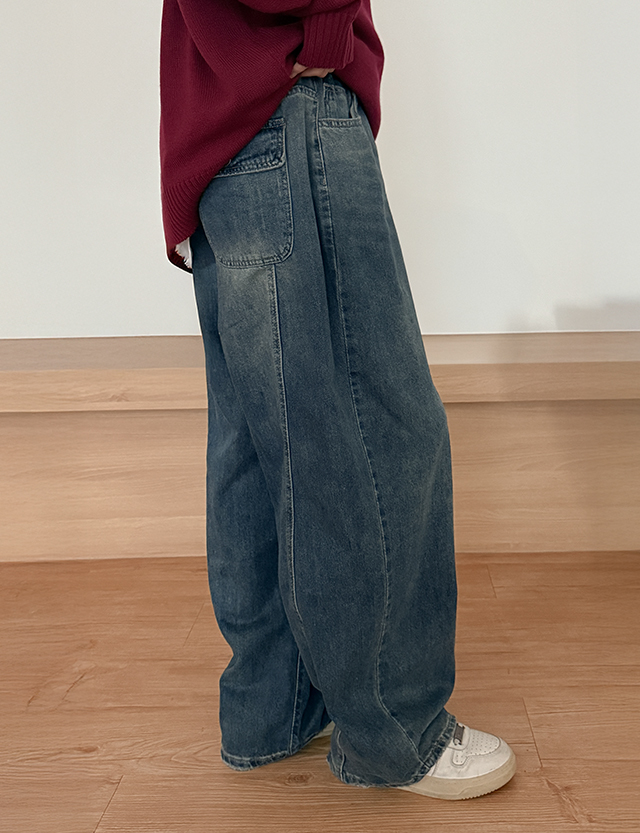 - 세미벌룬핏 와이드 데님으로 하체 군살을 자연스럽게 커버