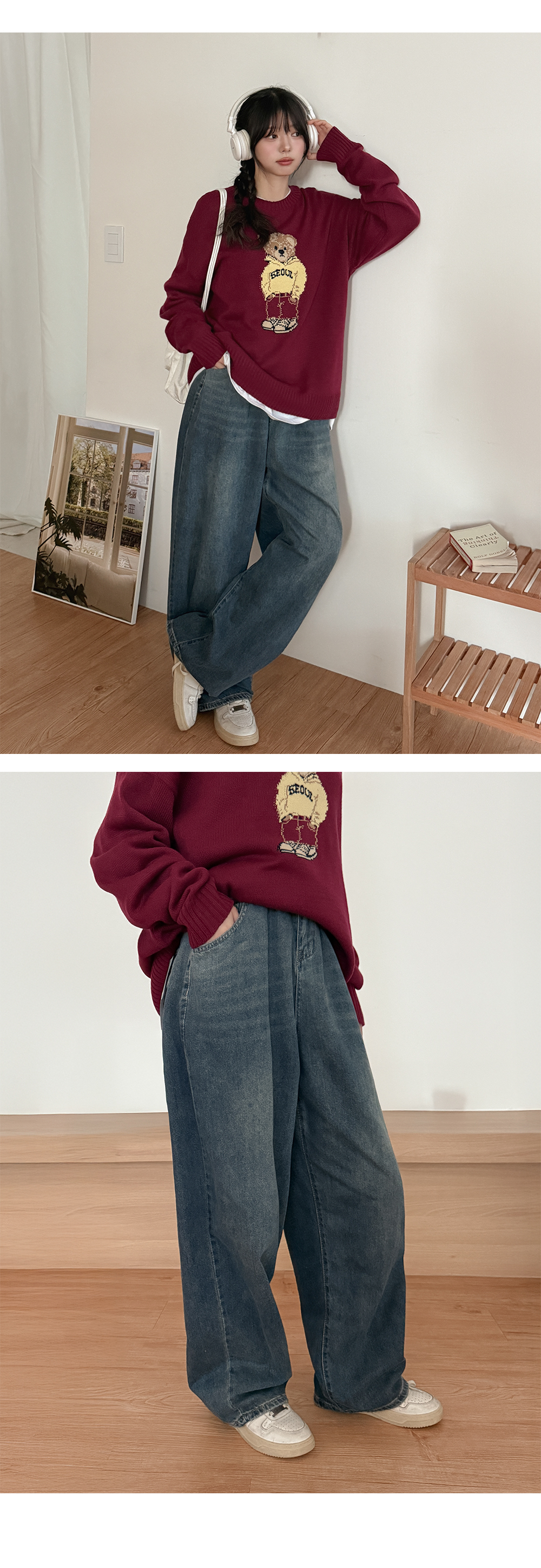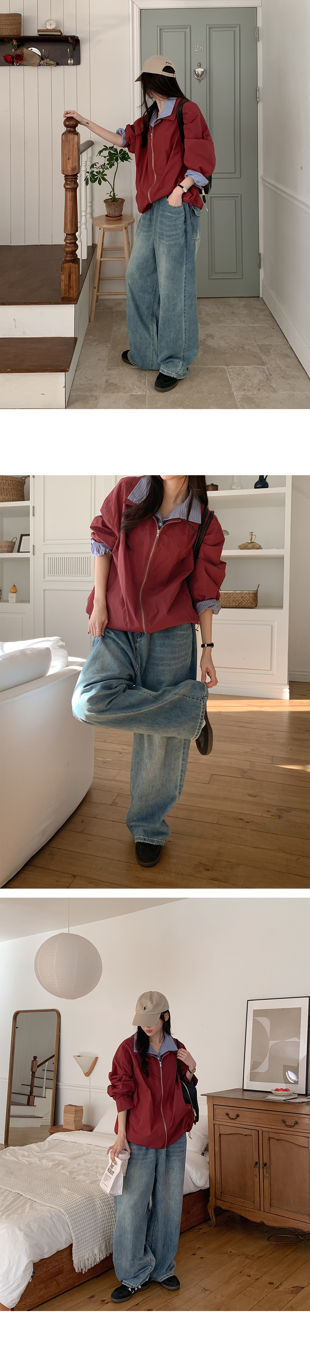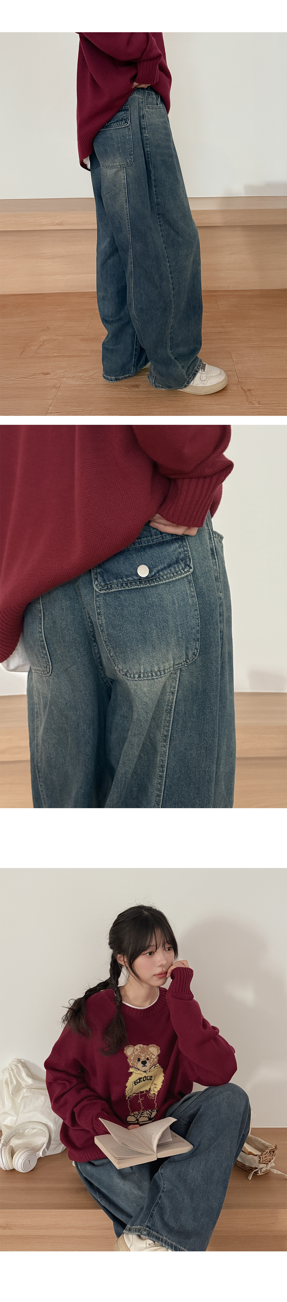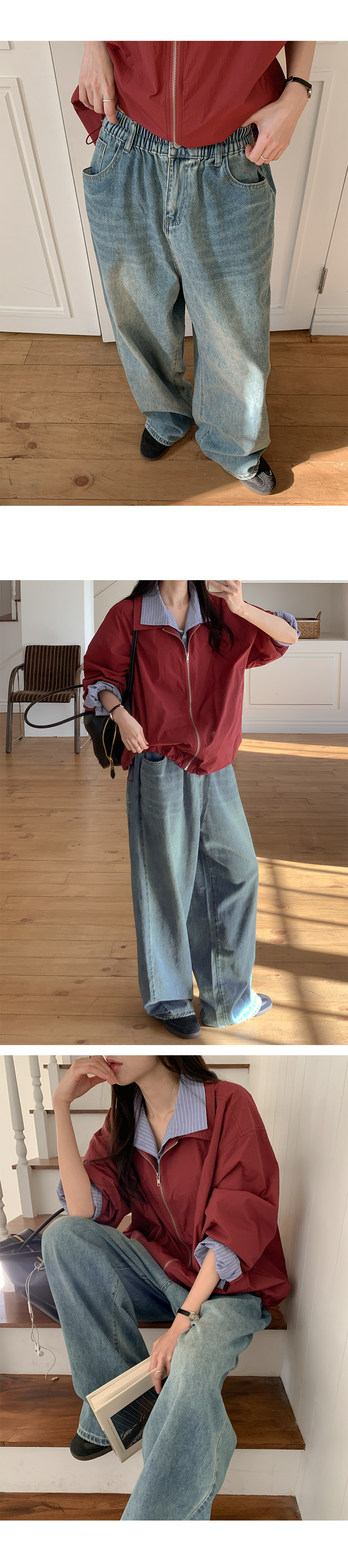 - 세미벌룬핏 와이드 데님으로 하체 군살을 자연스럽게 커버