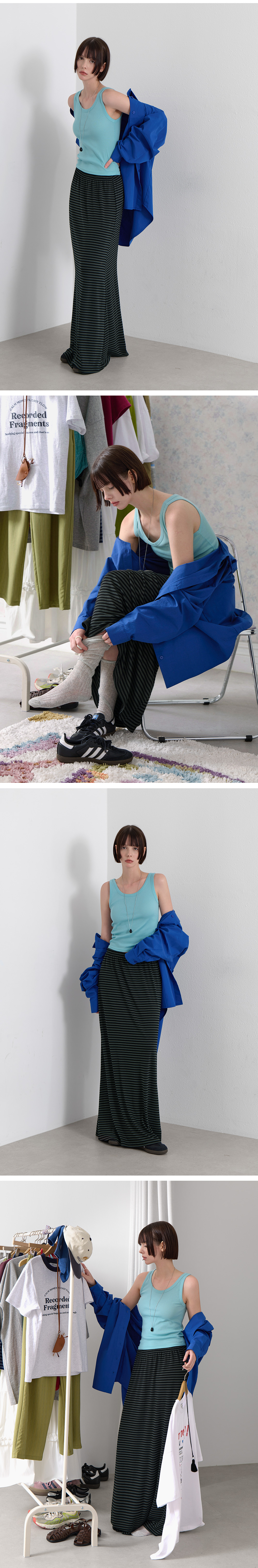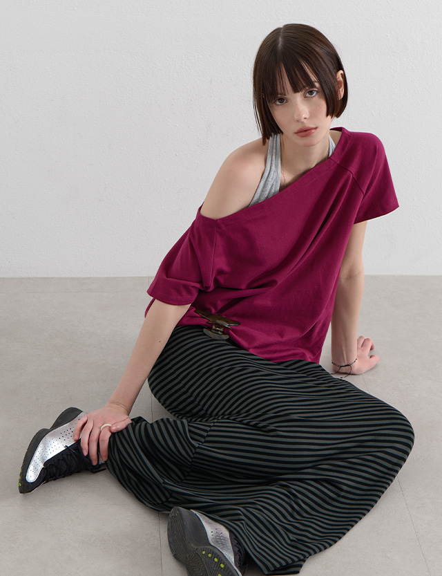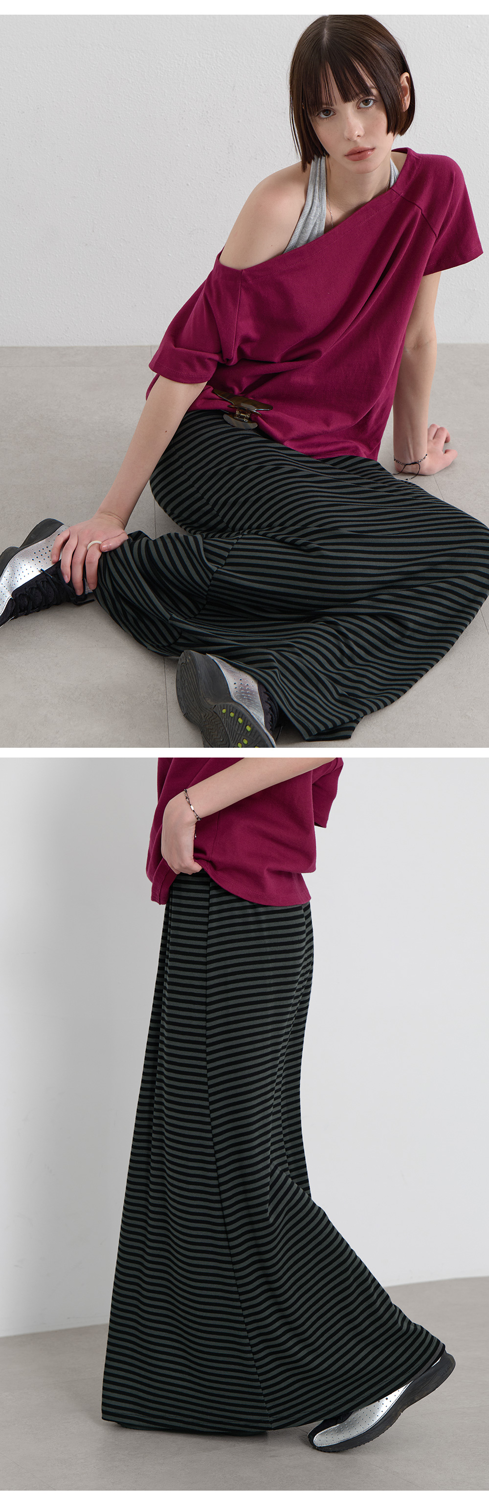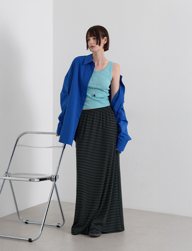 · 잔잔한 간격의 스트라이프로 세로 라인 강조
