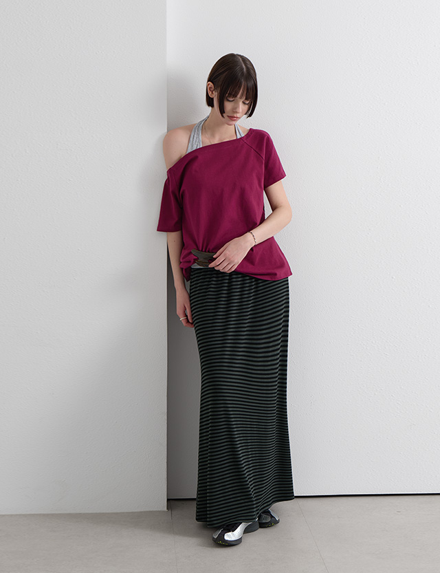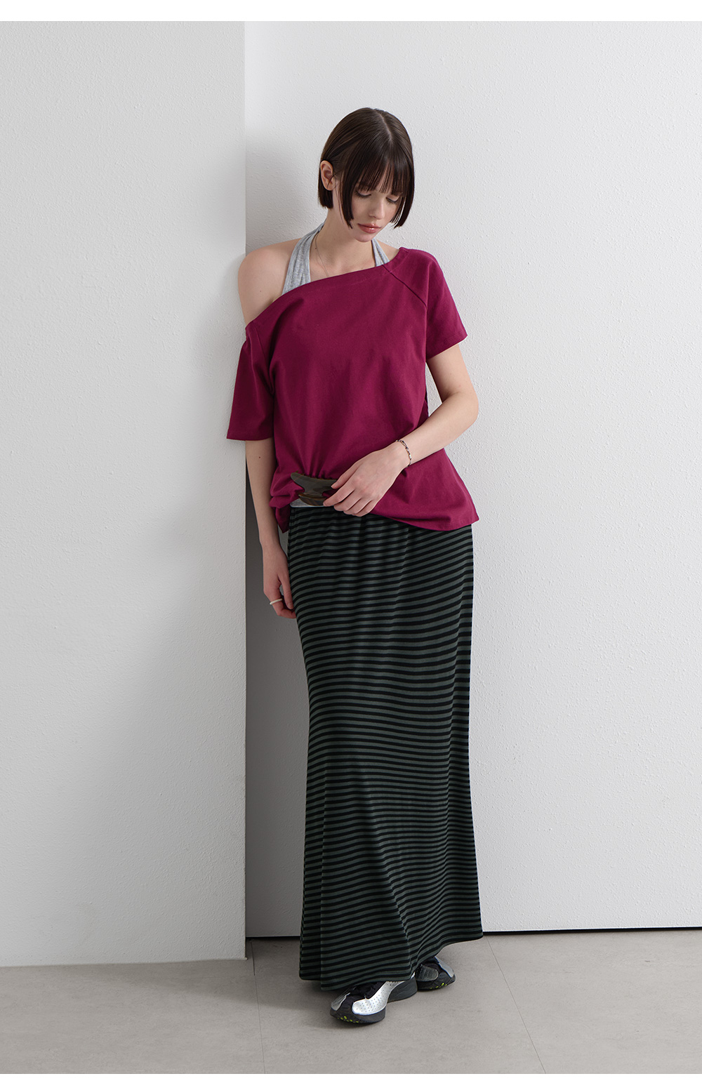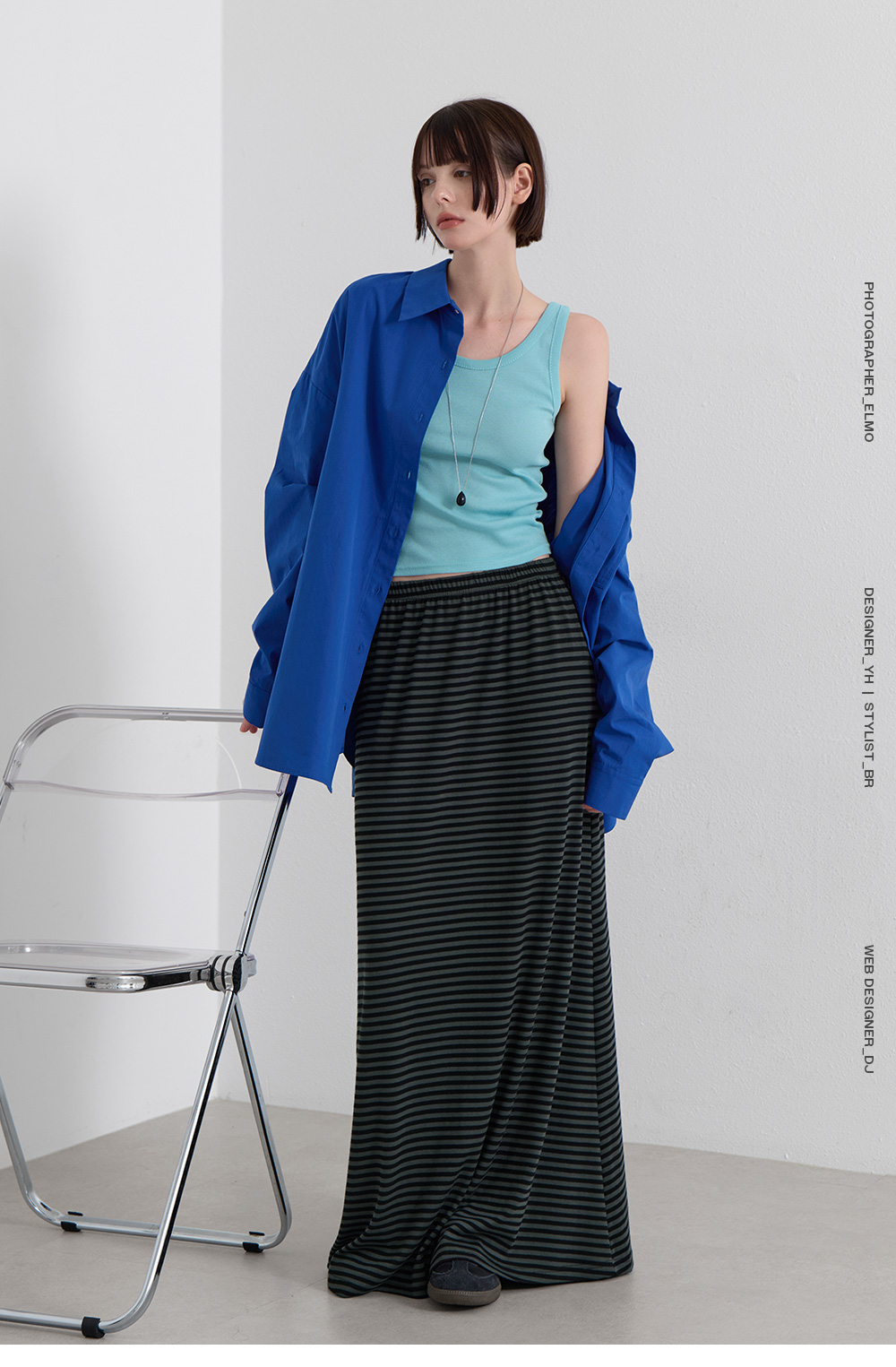 · 잔잔한 간격의 스트라이프로 세로 라인 강조