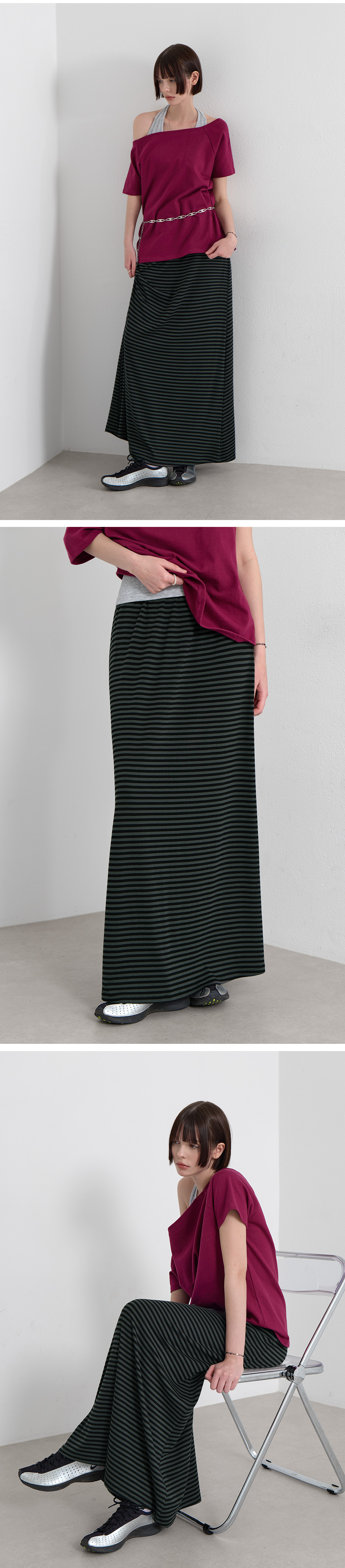 · 맥시 기장으로 길어 보이는 레그 라인 연출