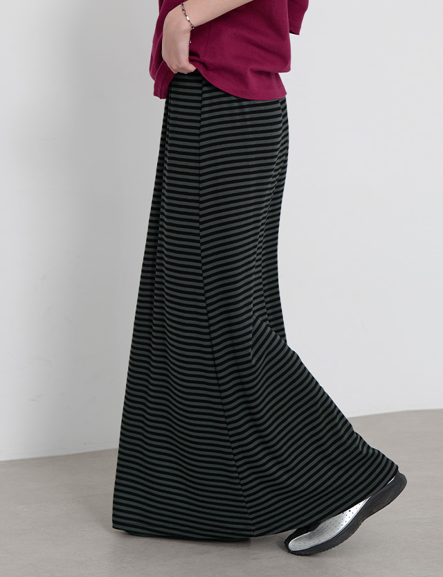 · 허리부터 힙까지는 자연스럽게, 밑단은 은은하게 퍼지는 실루엣