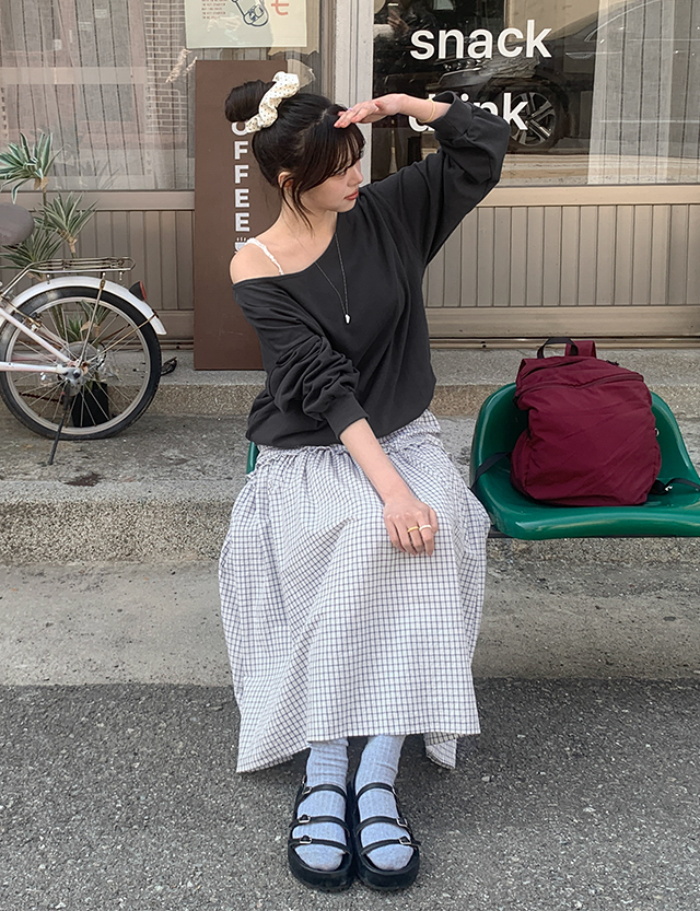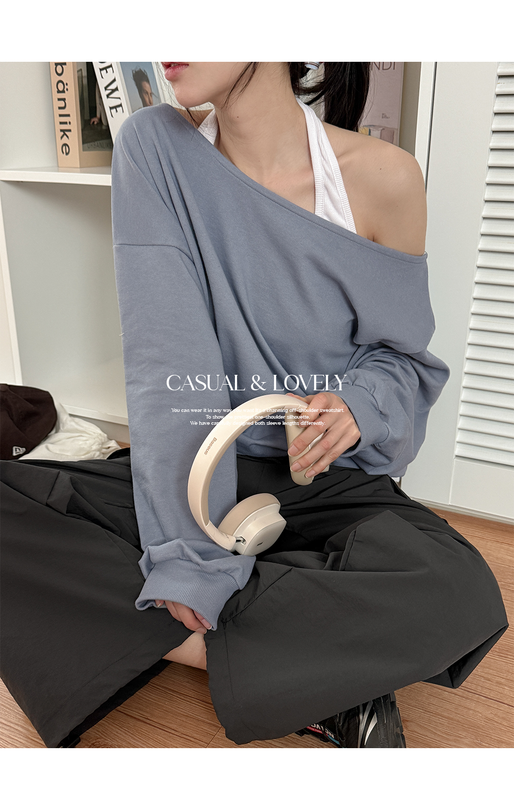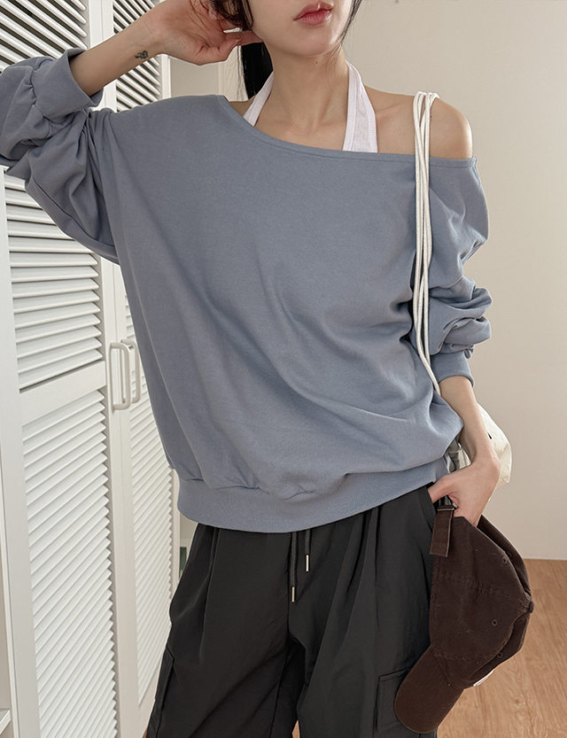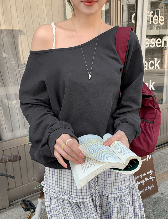매력적인 오프숄더 맨투맨이에요.