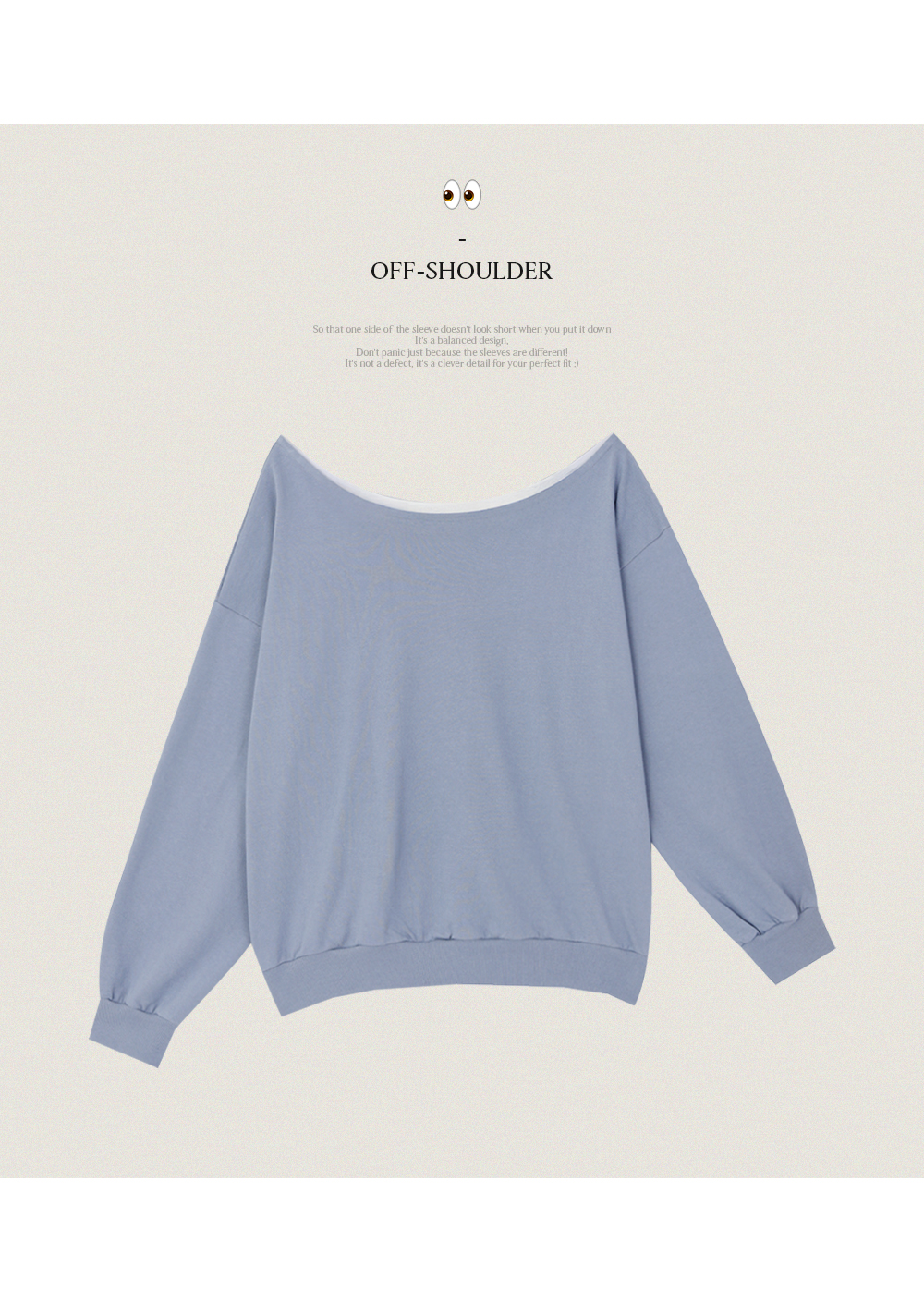 어깨를 내려 입었을 때 한쪽 소매가 짧아 보이지 않도록
