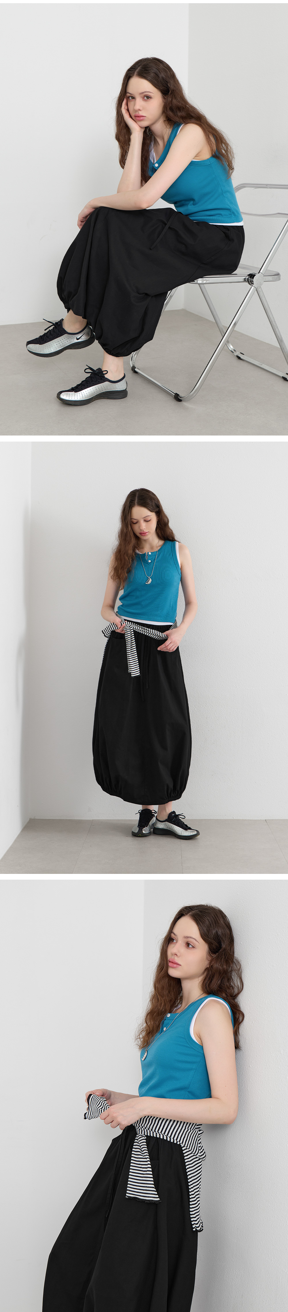 · 밑단 셔링 디테일로 풍성한 라인 완성