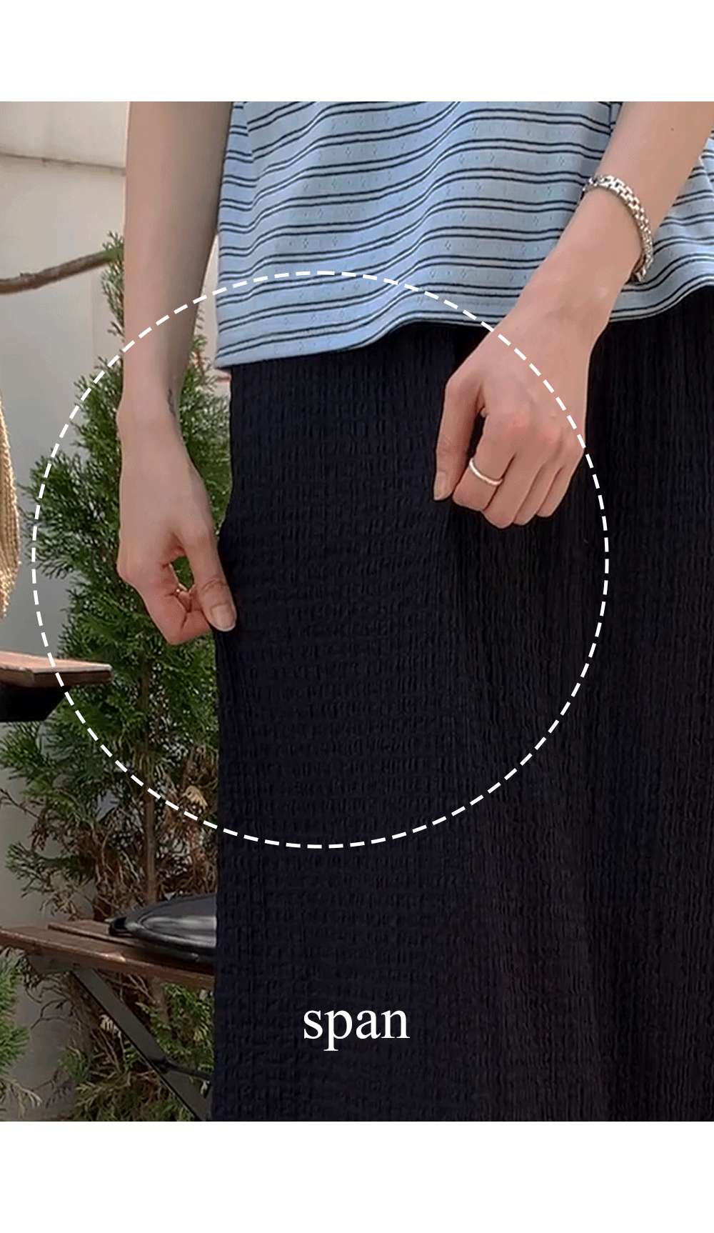 롱기장의 스커트이지만 뒤판에 슬릿 디테일로 편안한 활동성