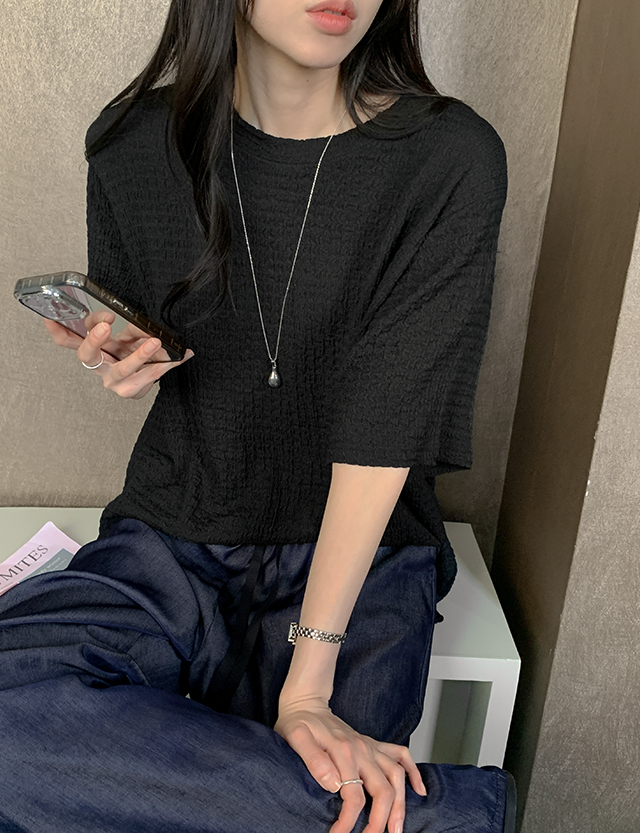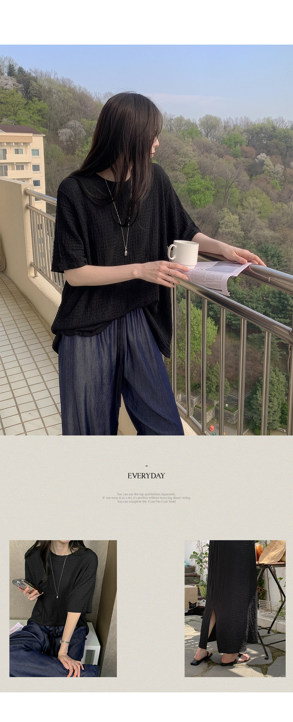 - 힙을 아예 가려주는 기장감으로 부담없는 착용감의 티와