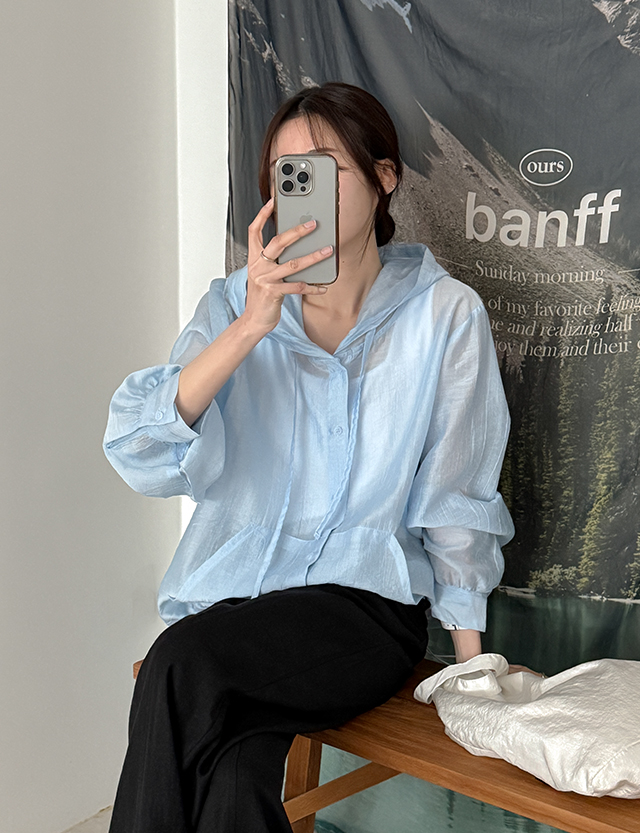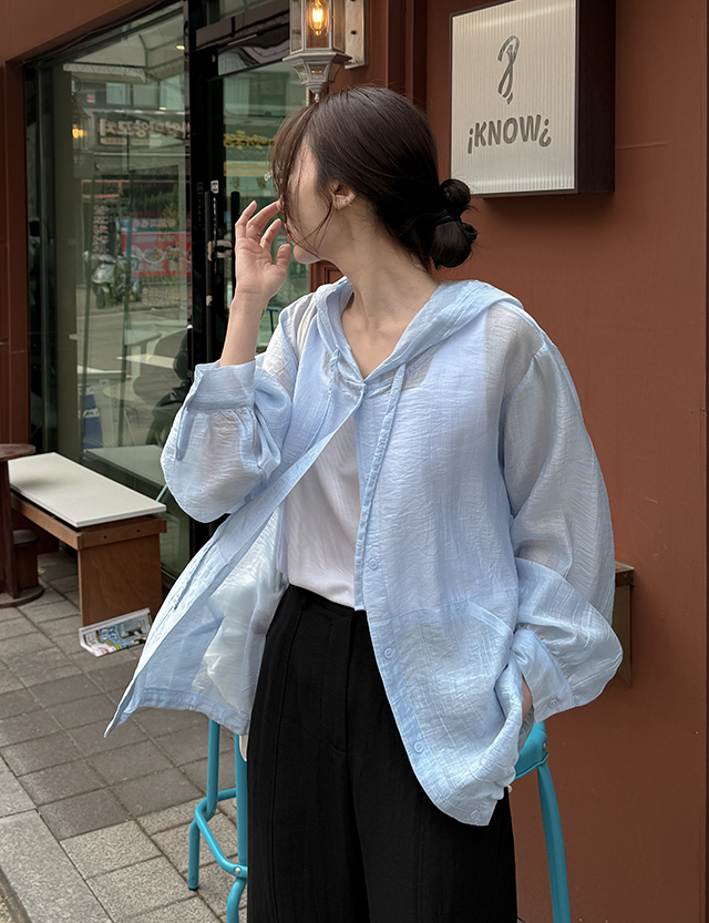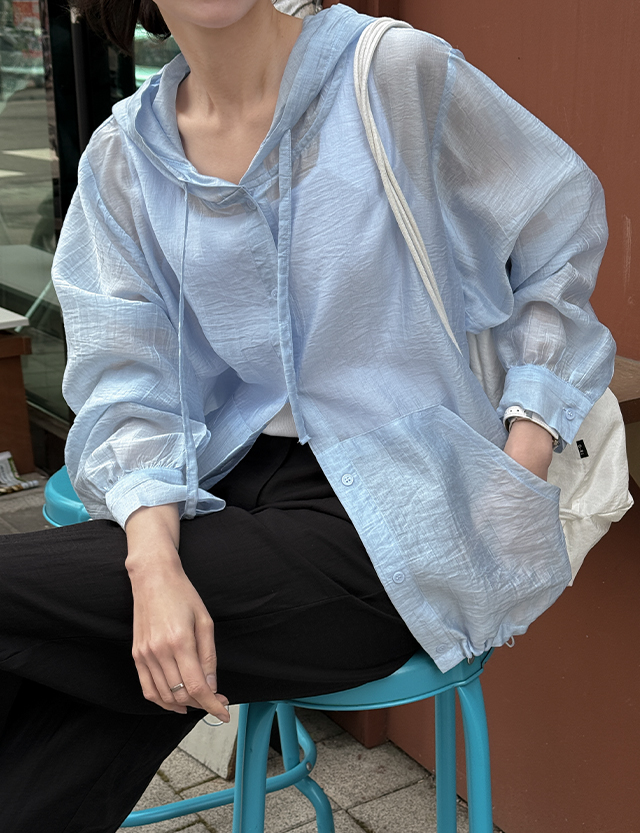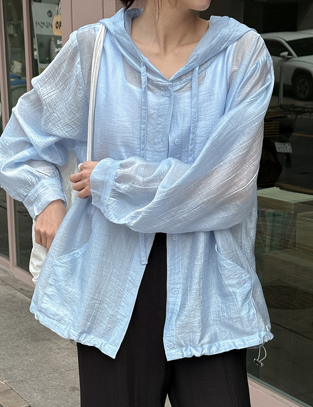 클로어 시스루 텐셀 루즈핏 후드 점퍼 87265