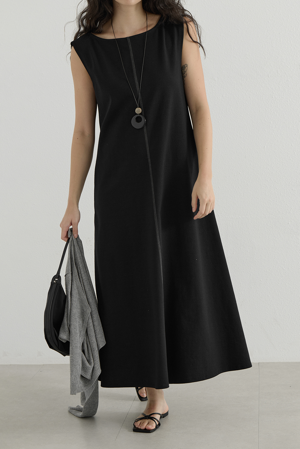 ·허리부터 풍성하게 퍼지는 플레어 패턴과 맥시 롱 기장이 어우러진 트렌디한 아웃핏