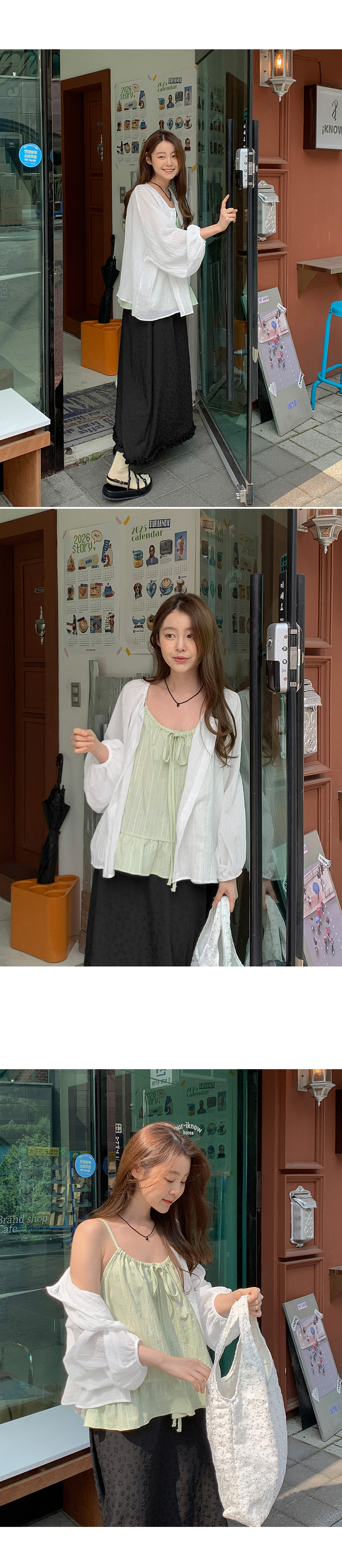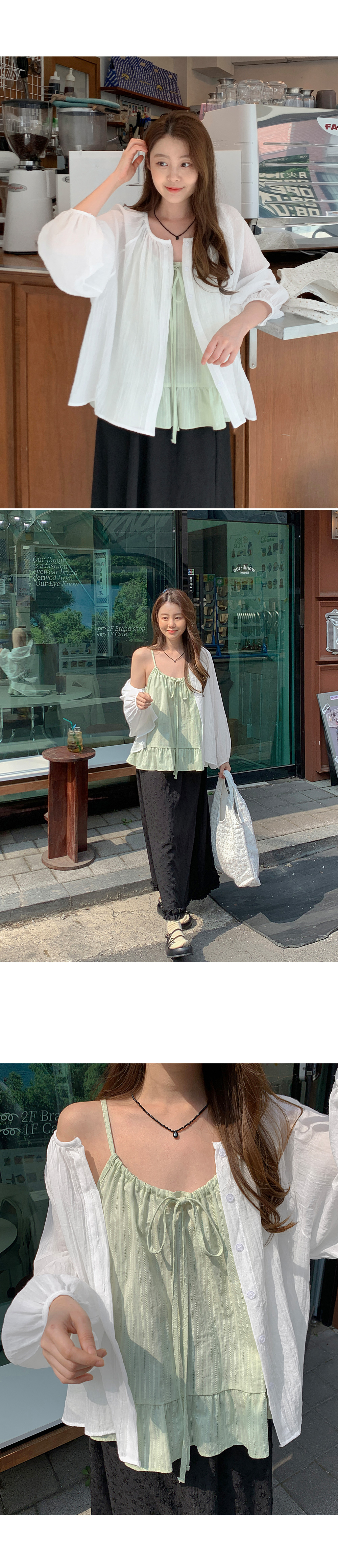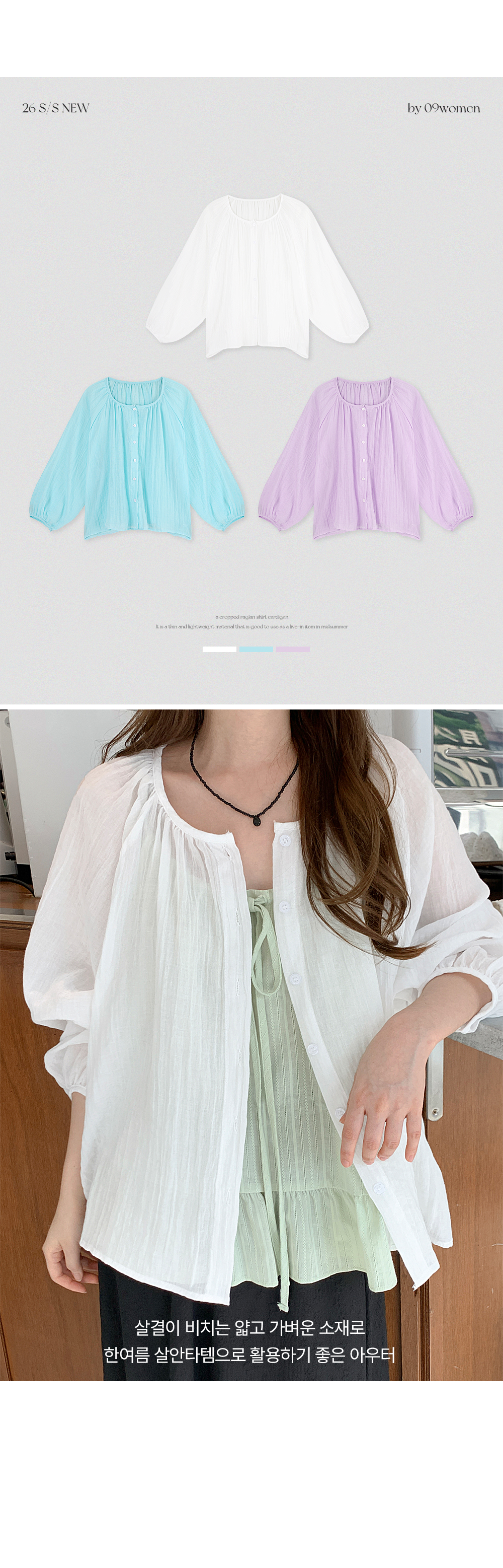 - 넥라인 셔링 디테일로 아방한 실루엣 연출