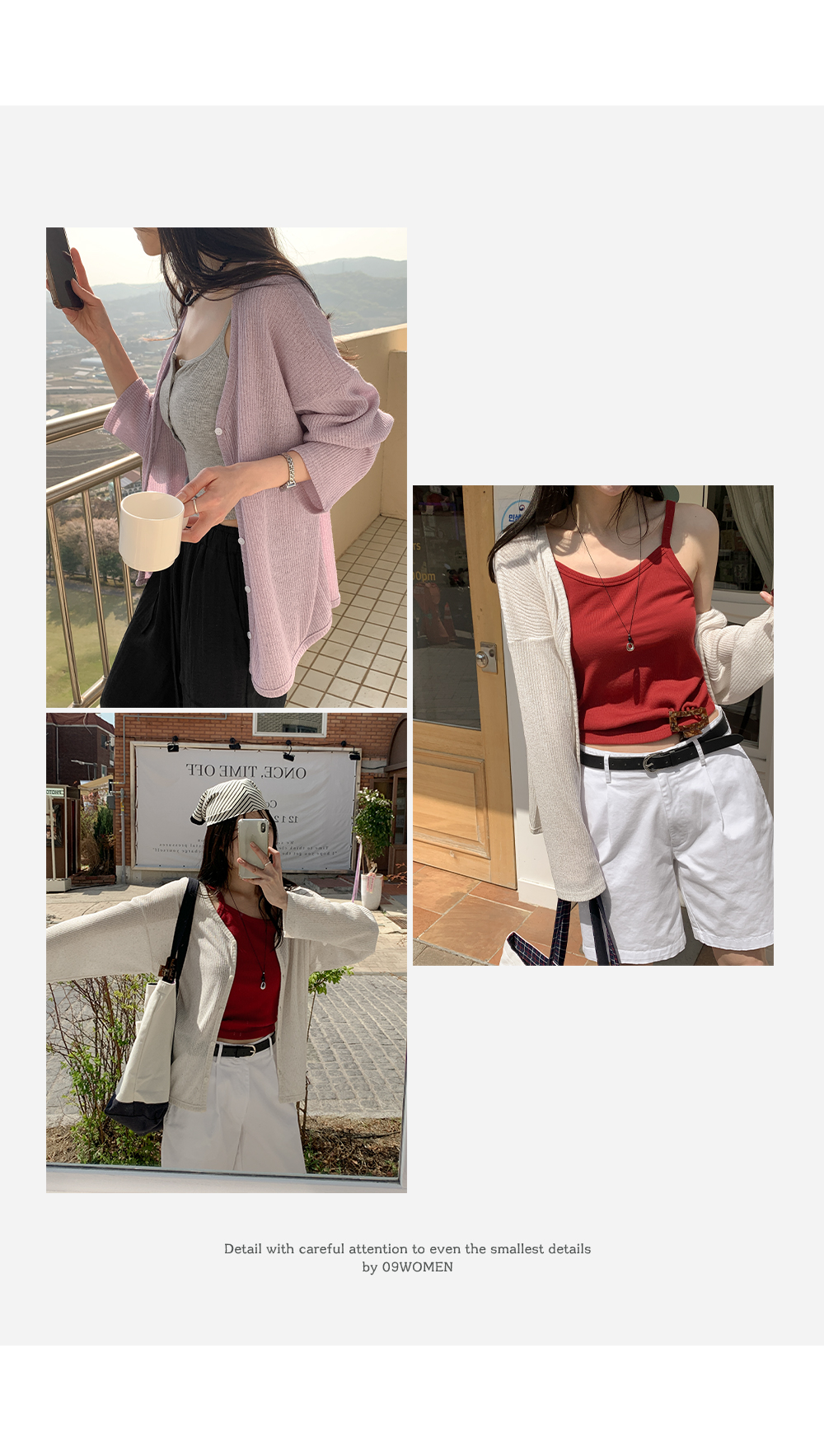 가볍고 드라이한 터치로 한여름까지 쾌적하게 착용 가능합니다.