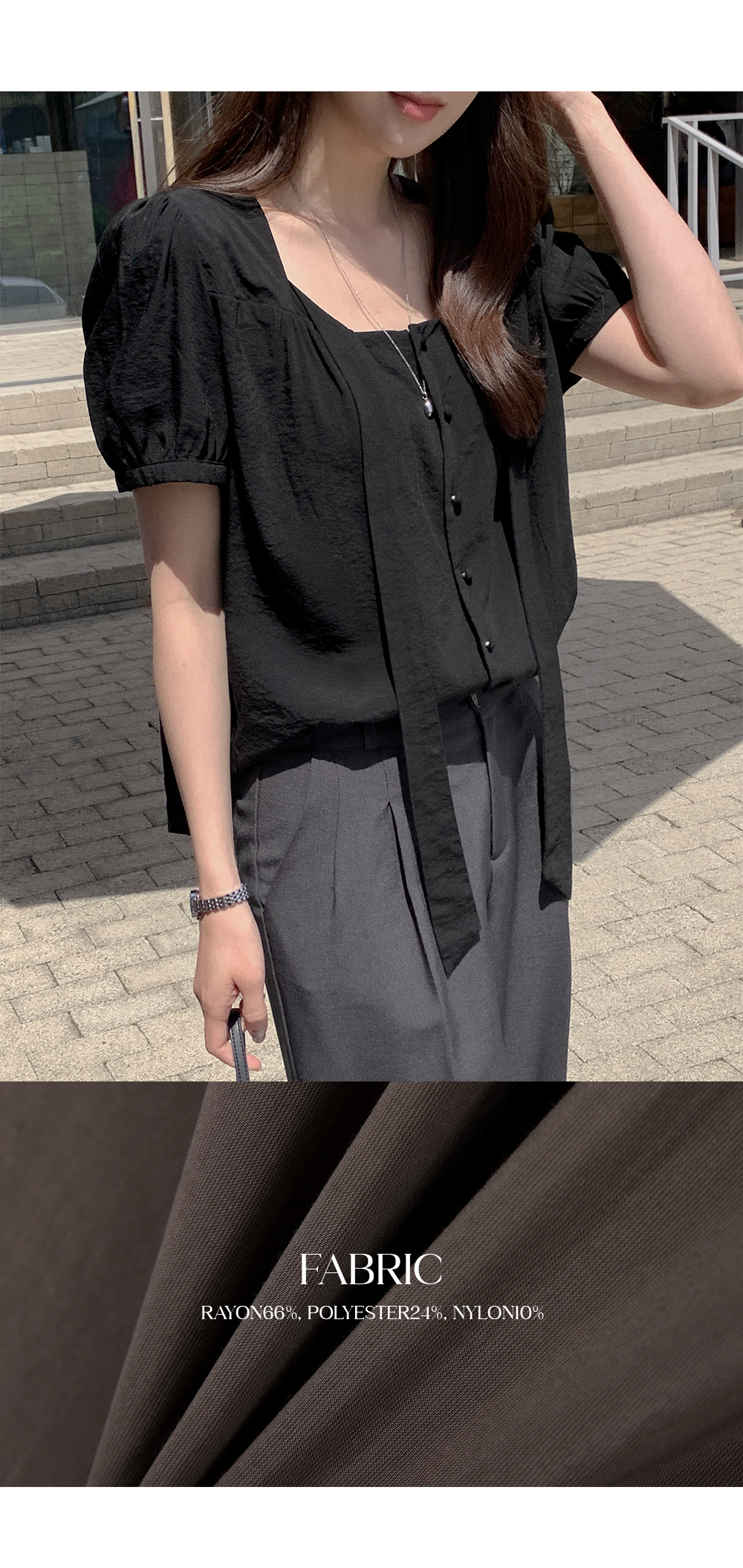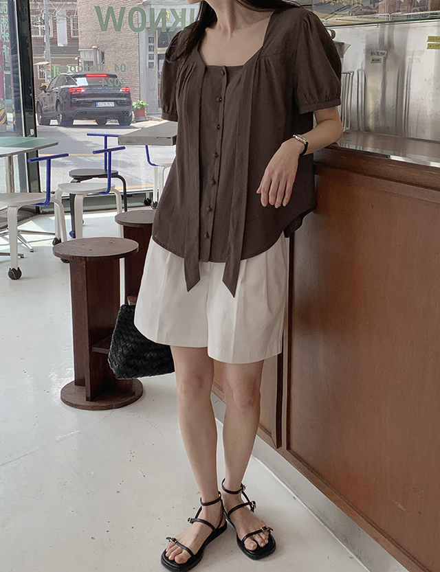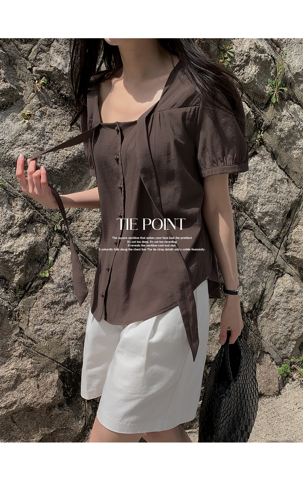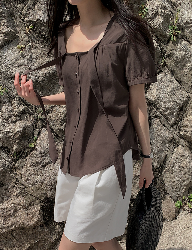 - 타이 끈 디테일로 여성스러운 무드