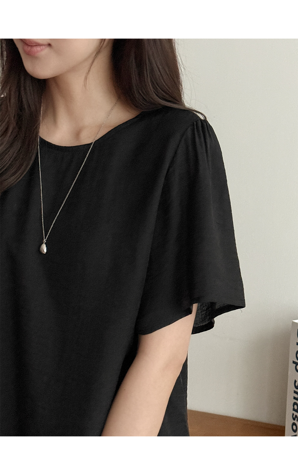 블라우스는 소매와 밑단이 자연스럽게 퍼지는