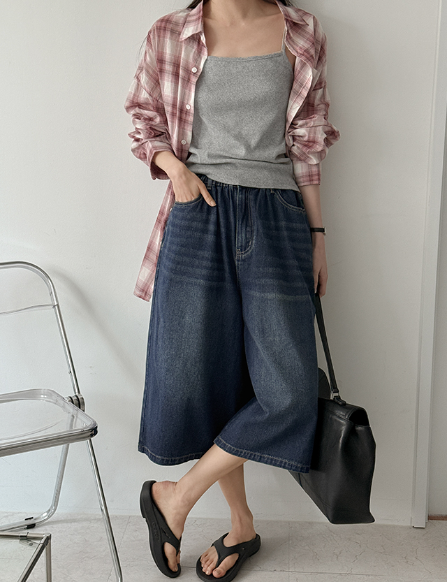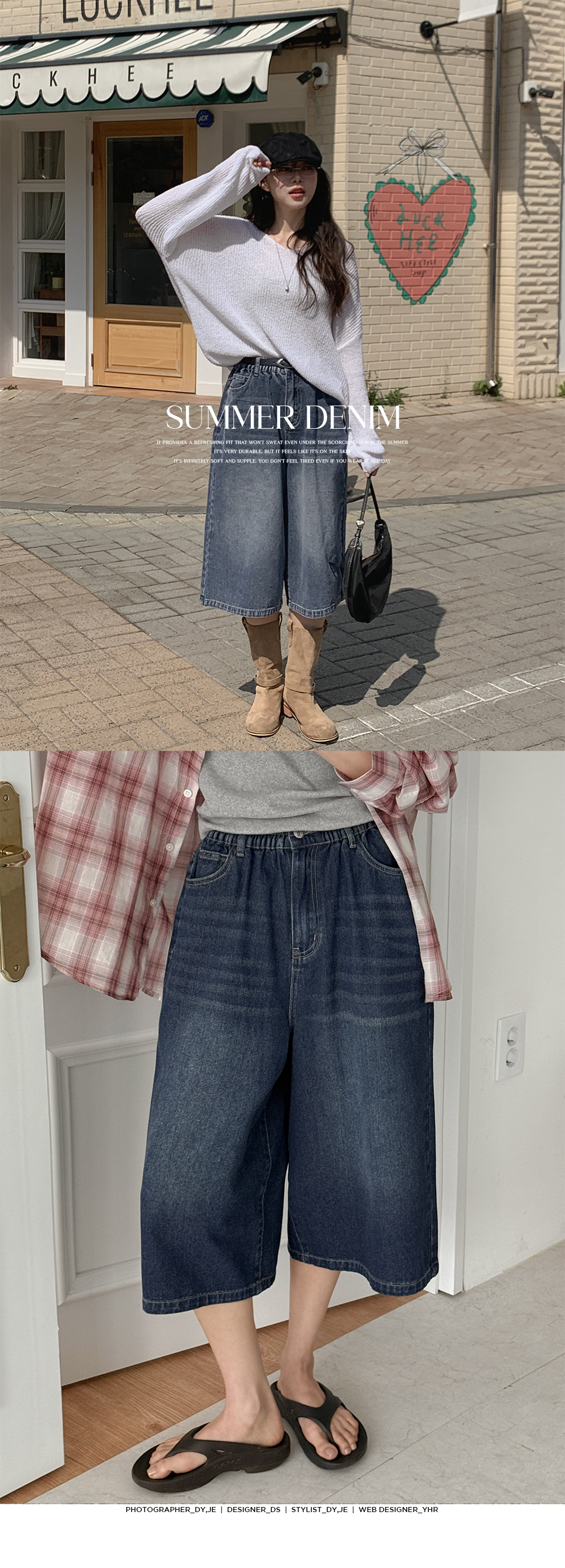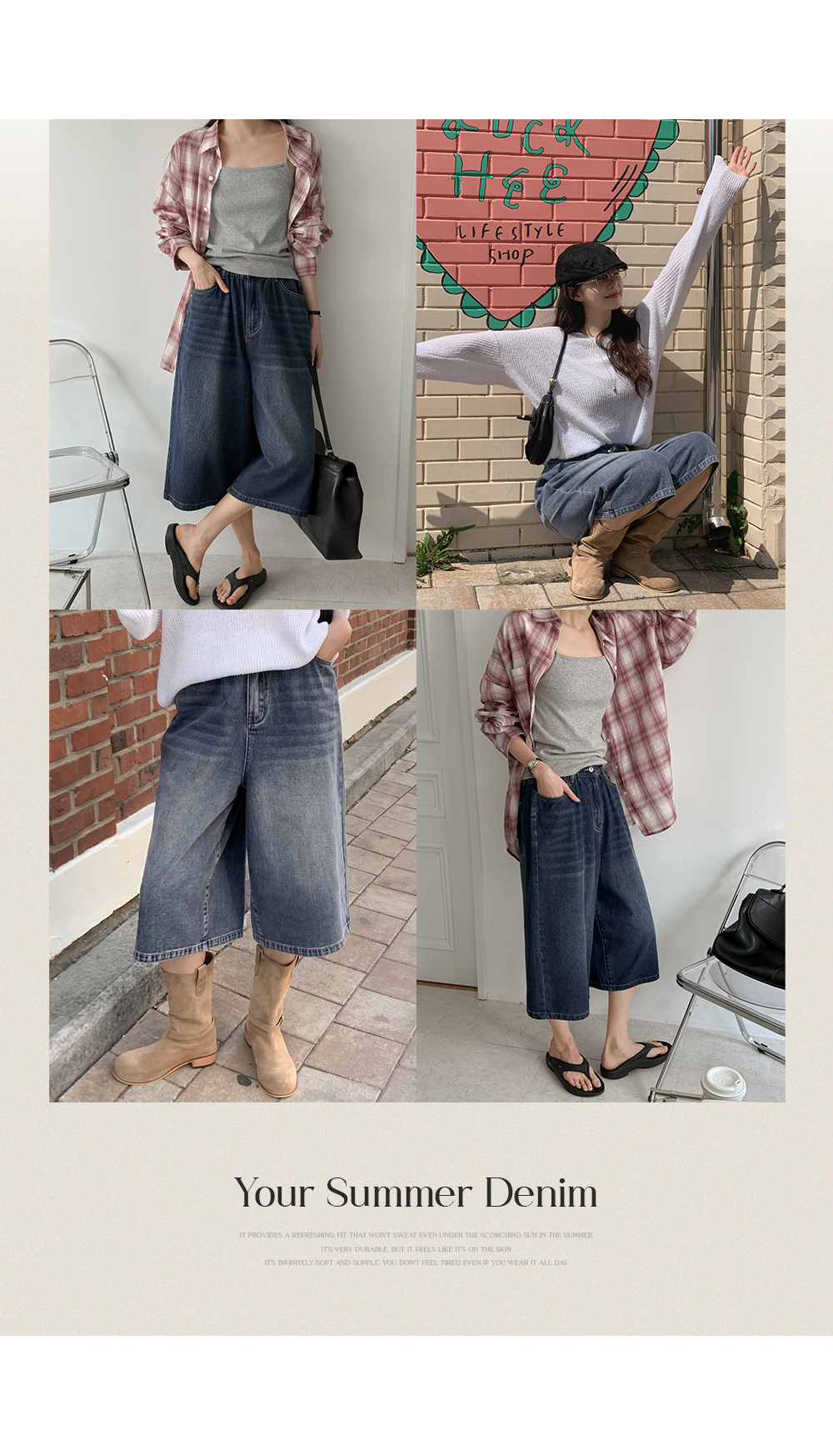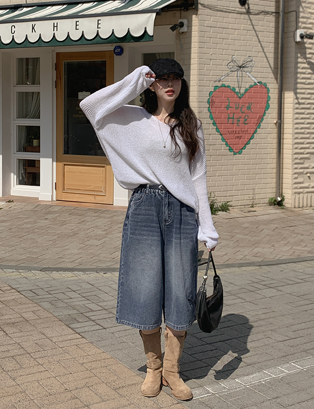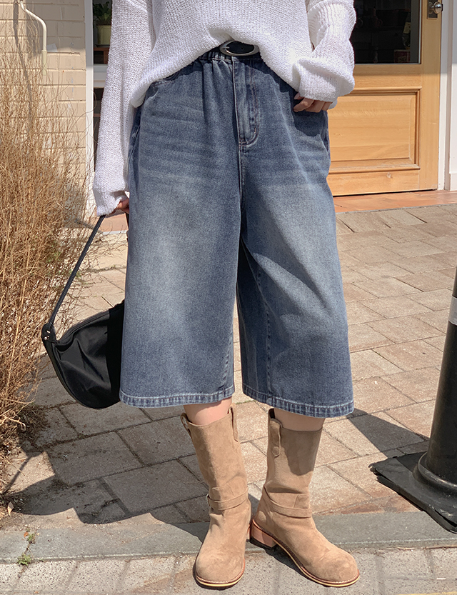 넉넉하게 떨어지는 와이드한 버뮤다 핏은 하체 라인을