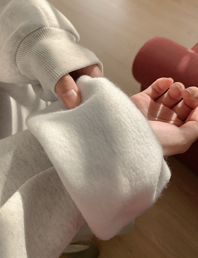 포근한 코튼 혼방 원단에 기모 안감을 도톰하게 더해