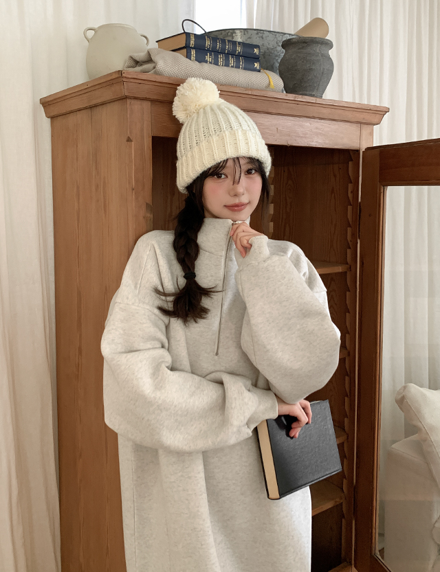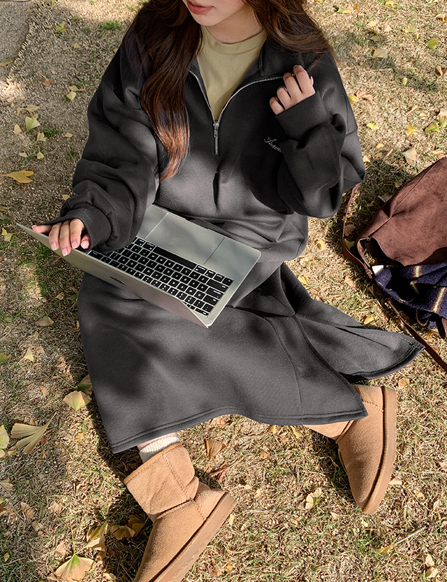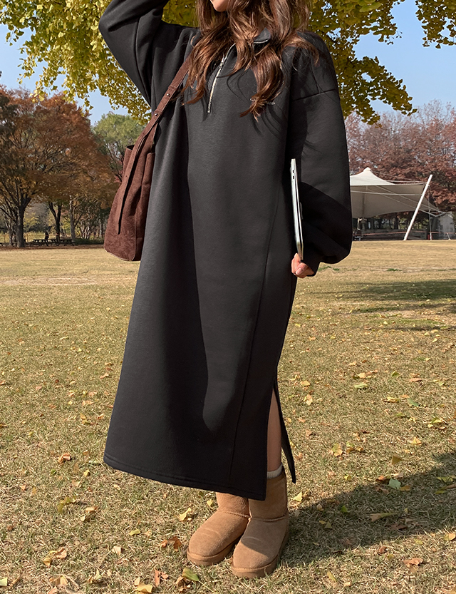 따뜻하지 반집업 기모 루즈핏 롱 원피스 85054