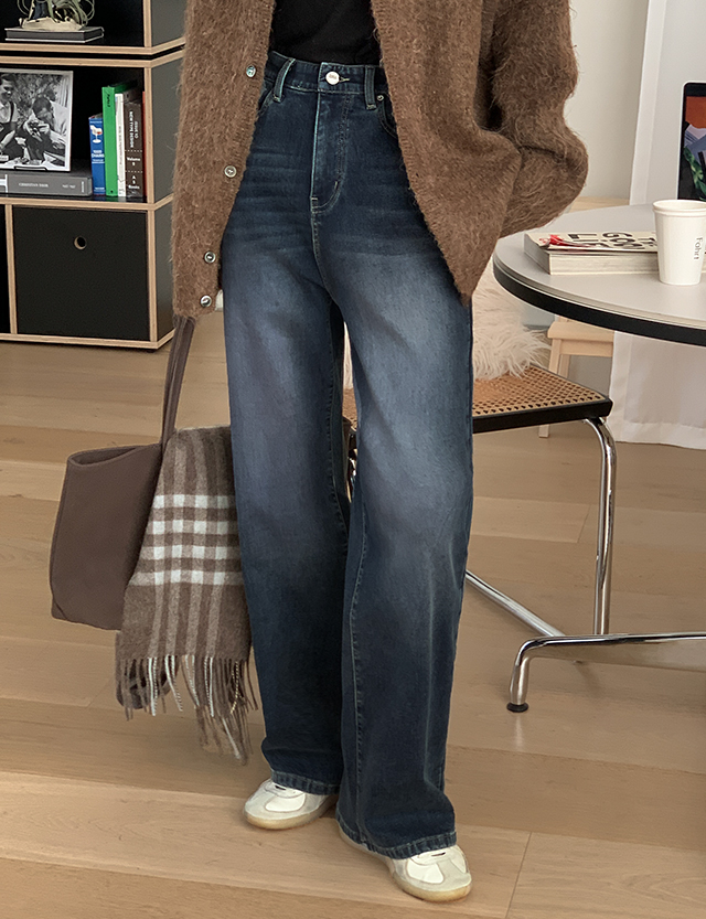 웜코지 히든밴딩 후끈기모 와이드 데님 팬츠 85413