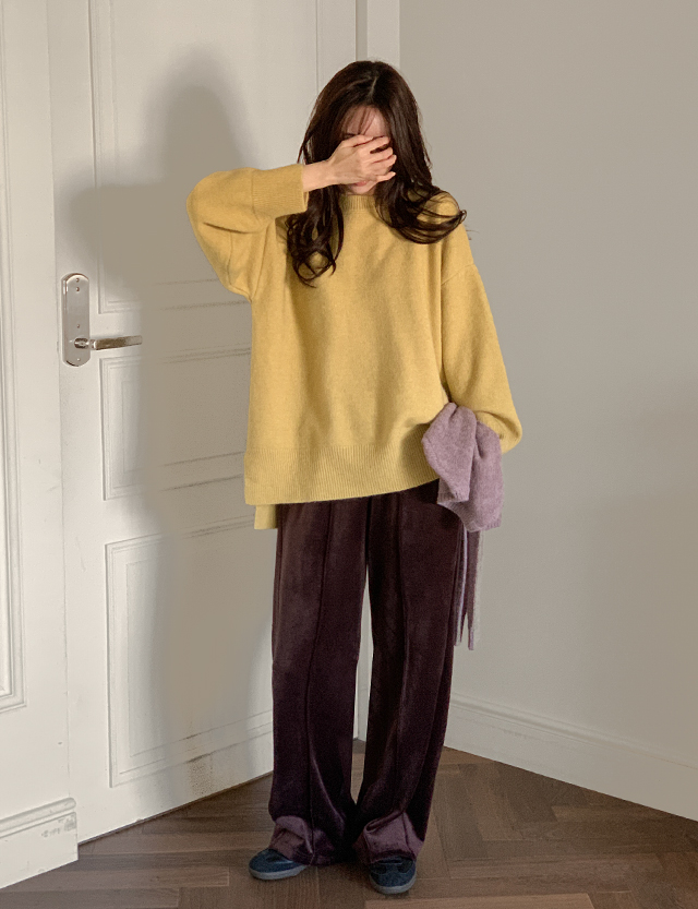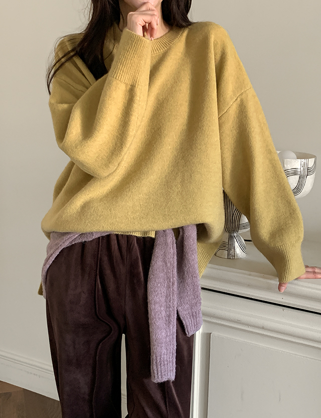 모가트 컬러 루즈핏 라운드넥 슬릿 니트