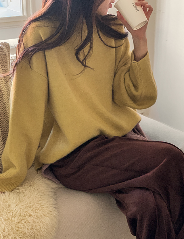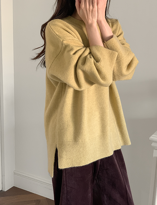모가트 컬러 루즈핏 라운드넥 슬릿 니트 85424