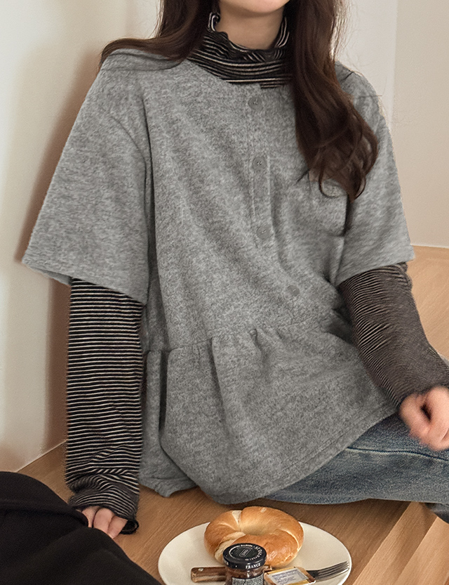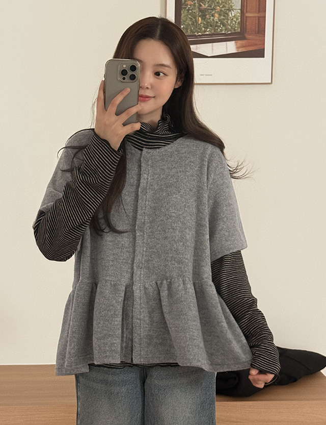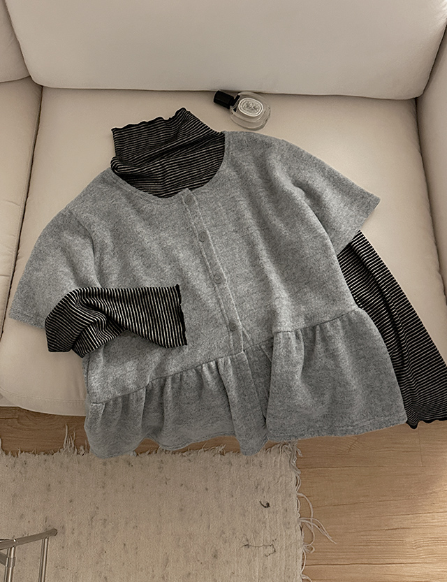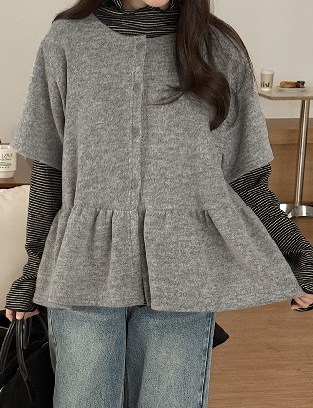 헤이틴 레이어드 기모 반팔 프릴 가디건 85685