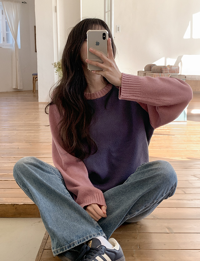 오벨 루즈핏 라벨 배색 나그랑 니트 86134