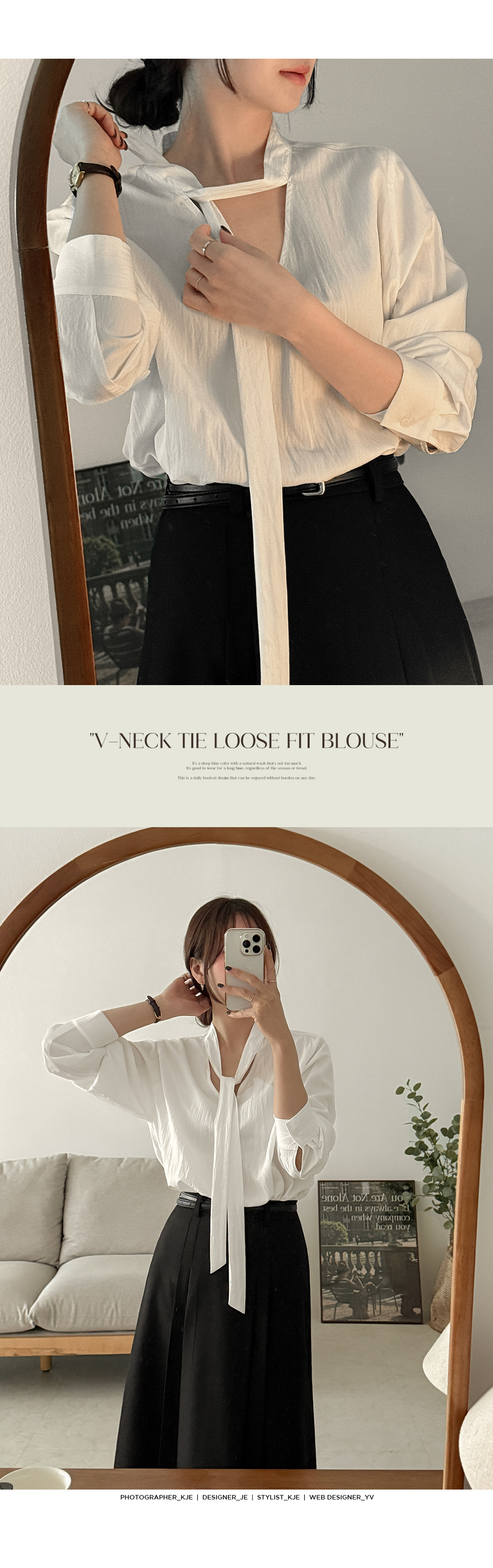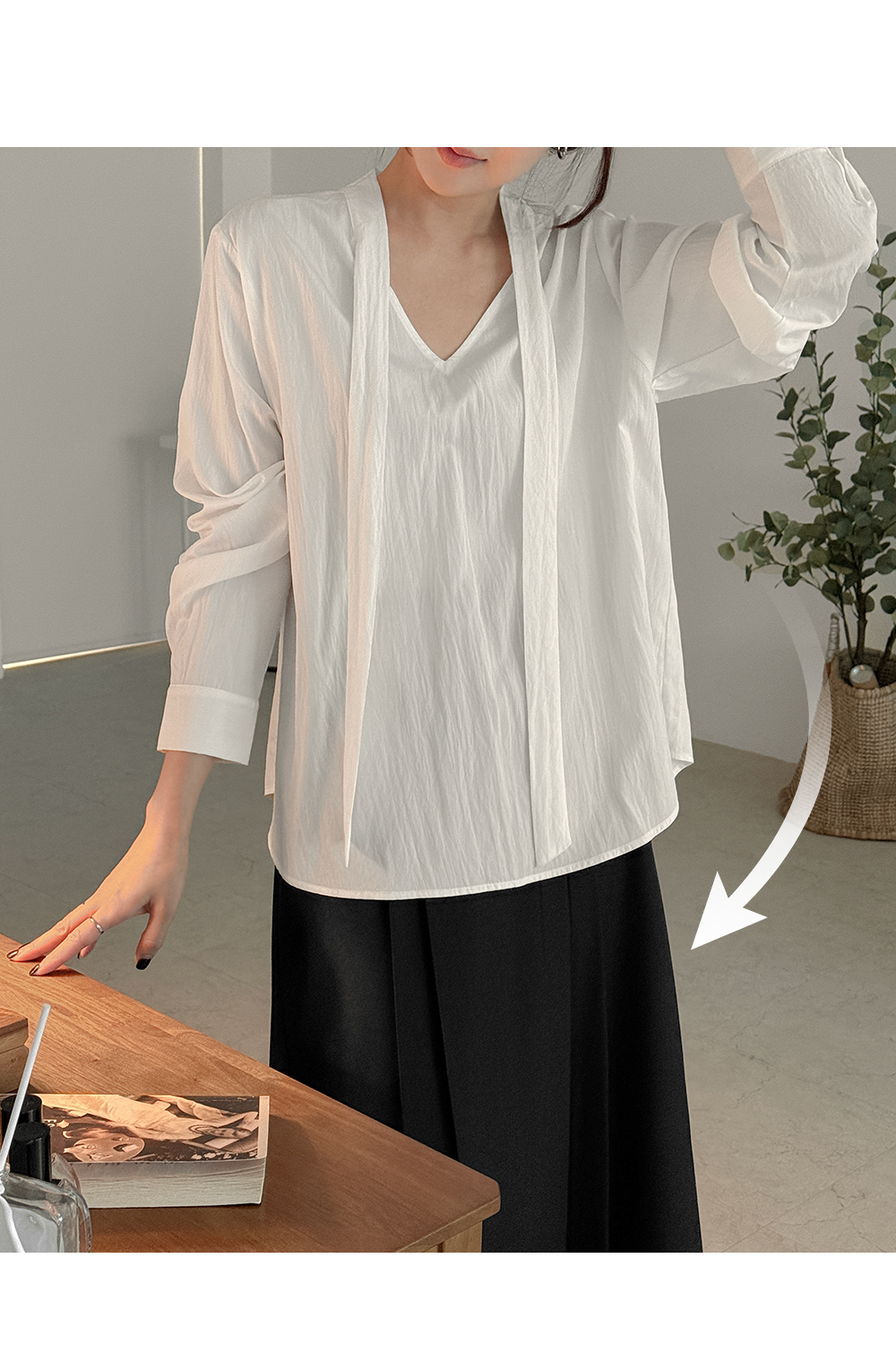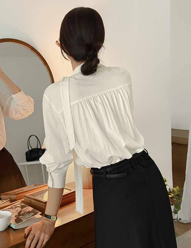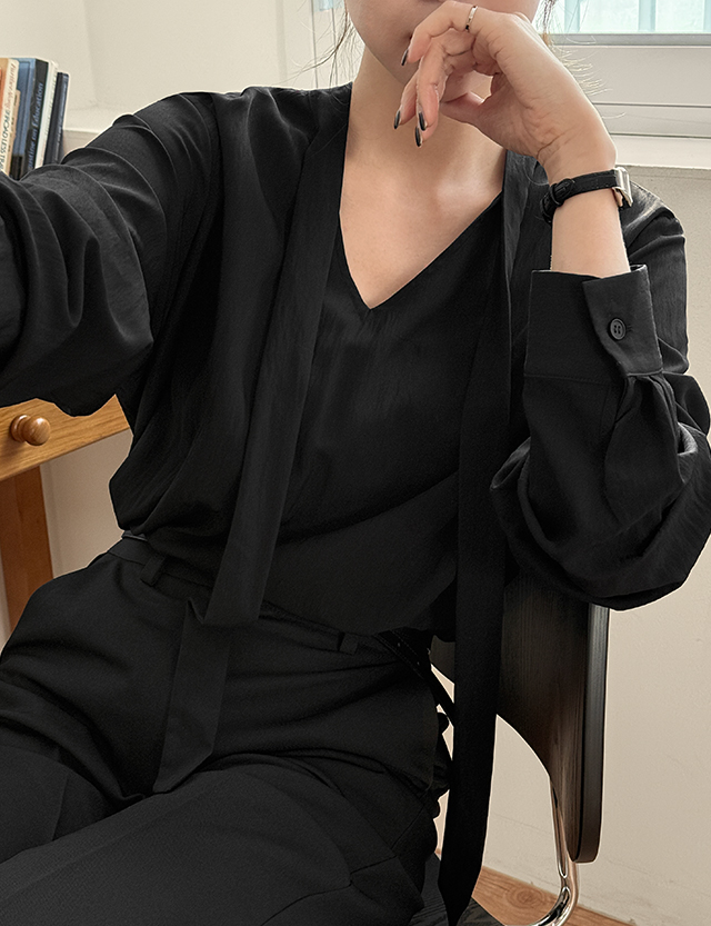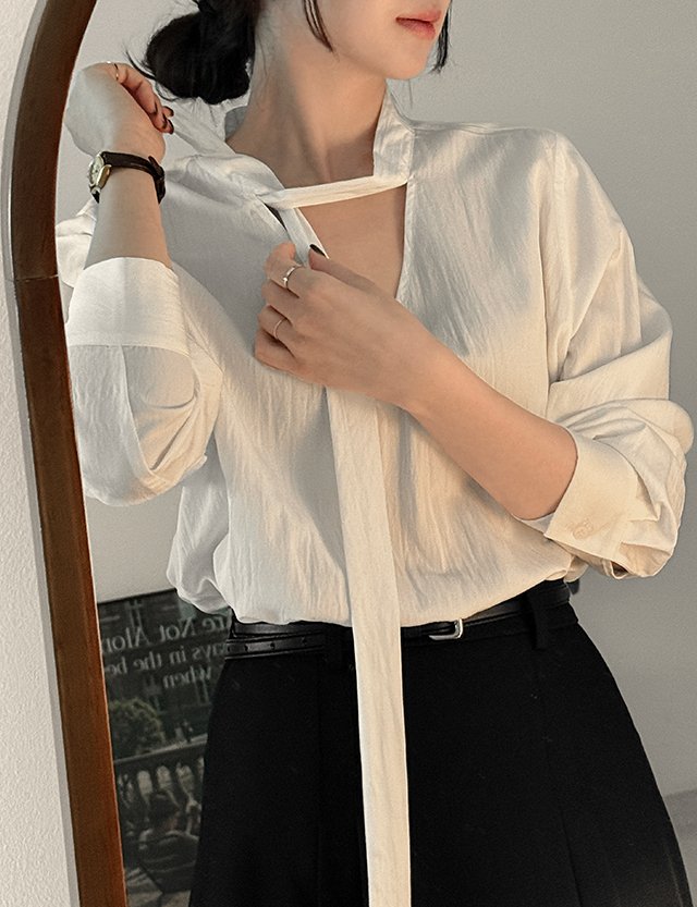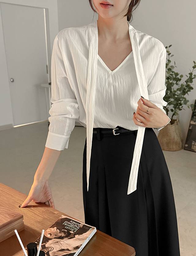 브이넥 타이 블라우스