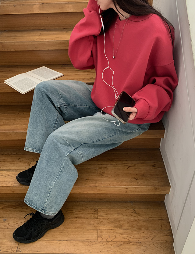 [컬러기획][엠디픽] 컬러라인 이중지 라운드 맨투맨 86055