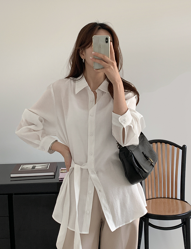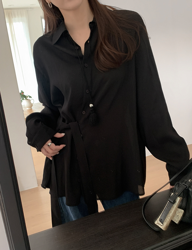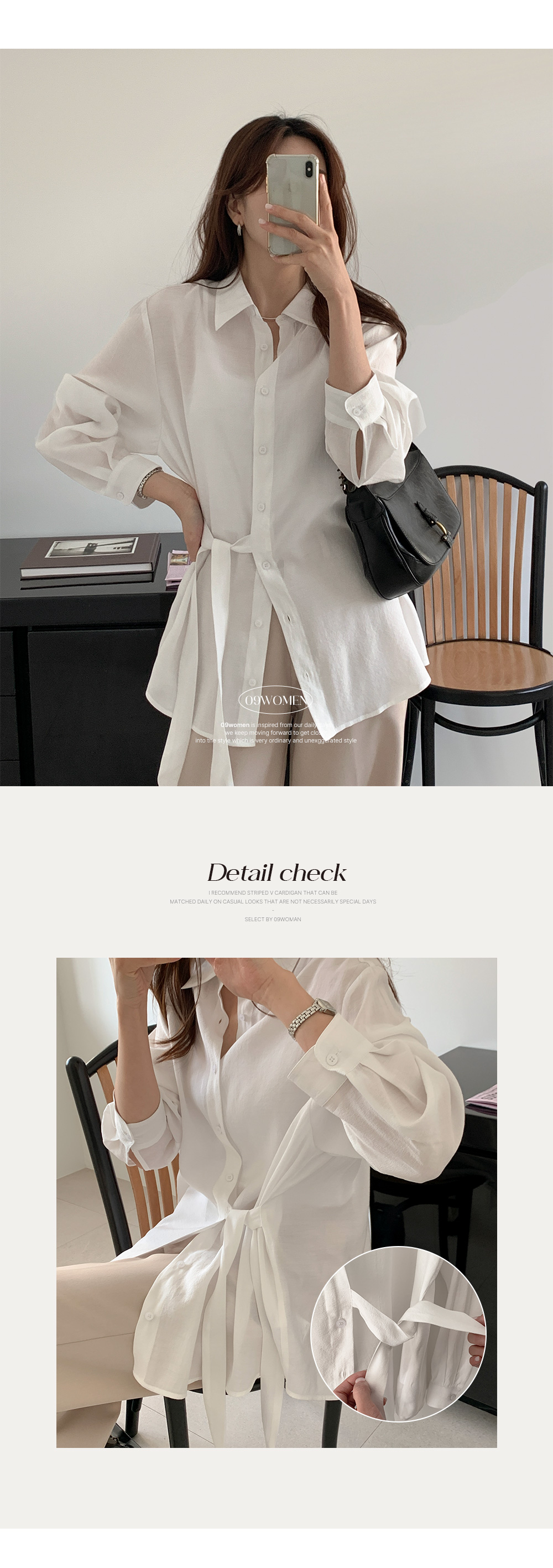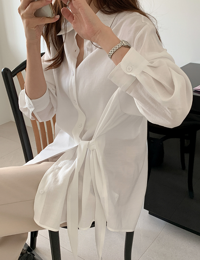 - 허리선을 묶어 자연스럽게 겹쳐지는 원단감이 포인트