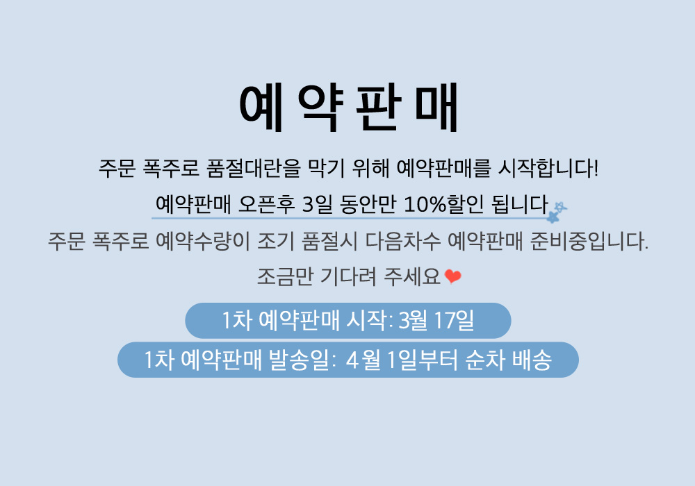 주문 결제 이후 영업일 기준 2~7일 배송 준비 기간이 소요됩니다.